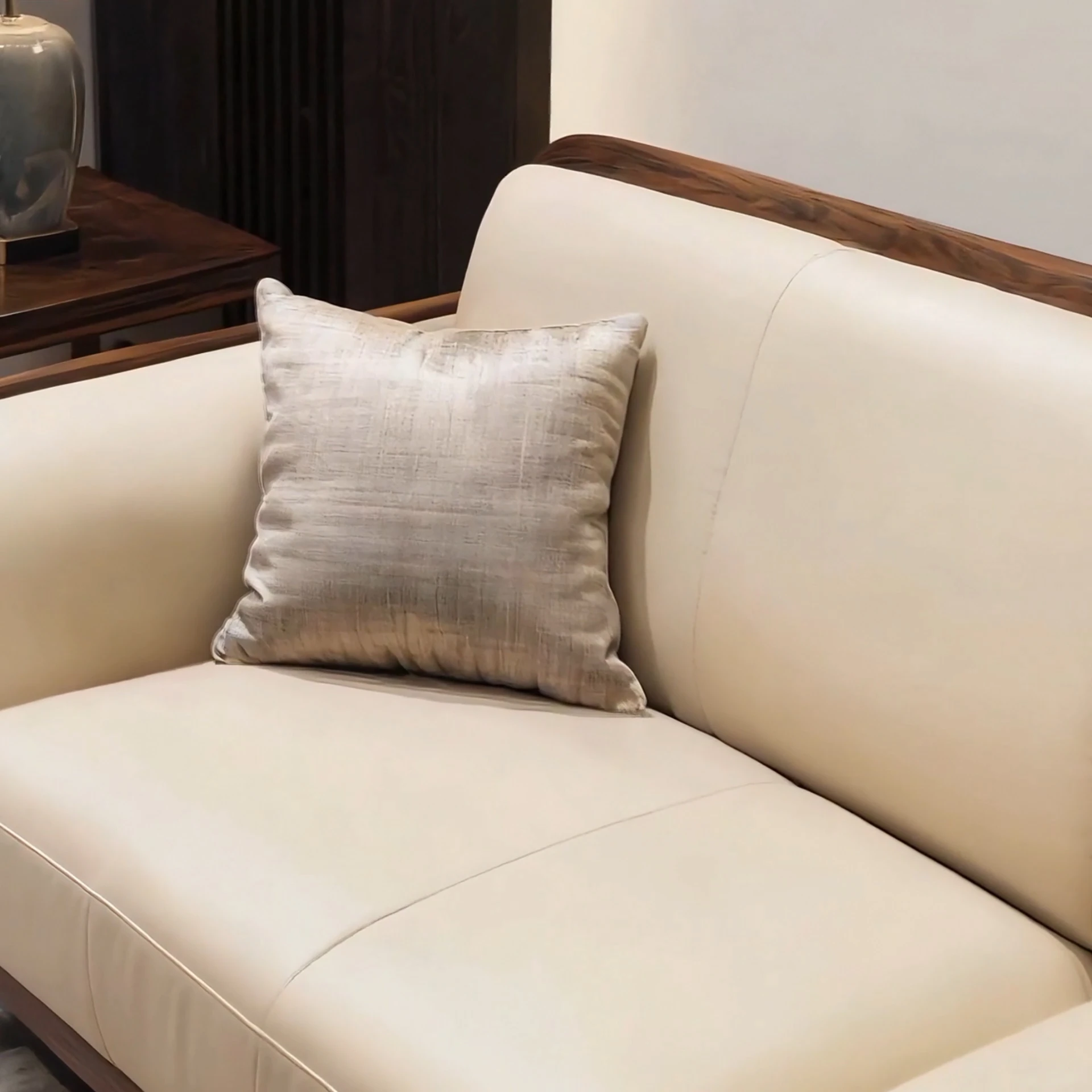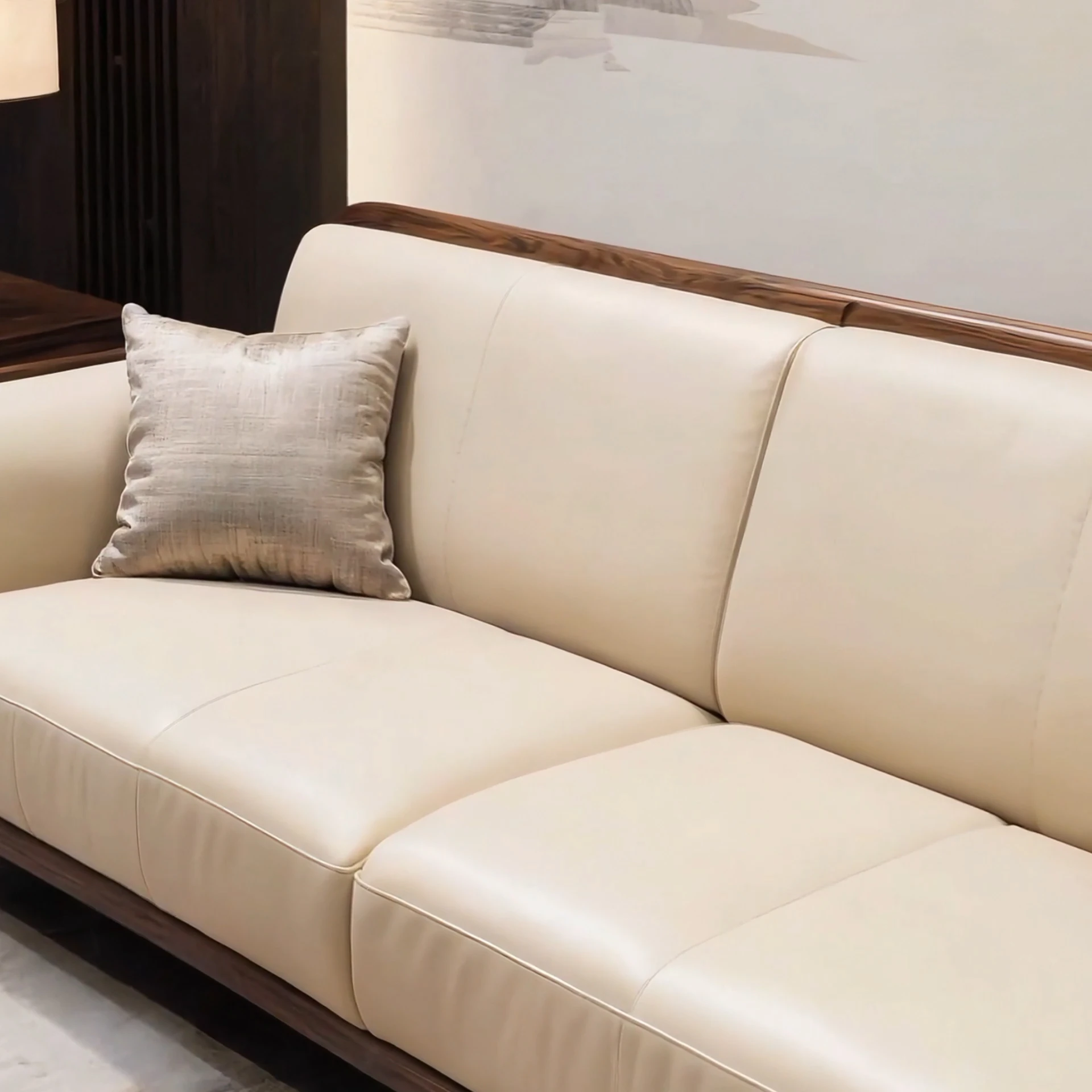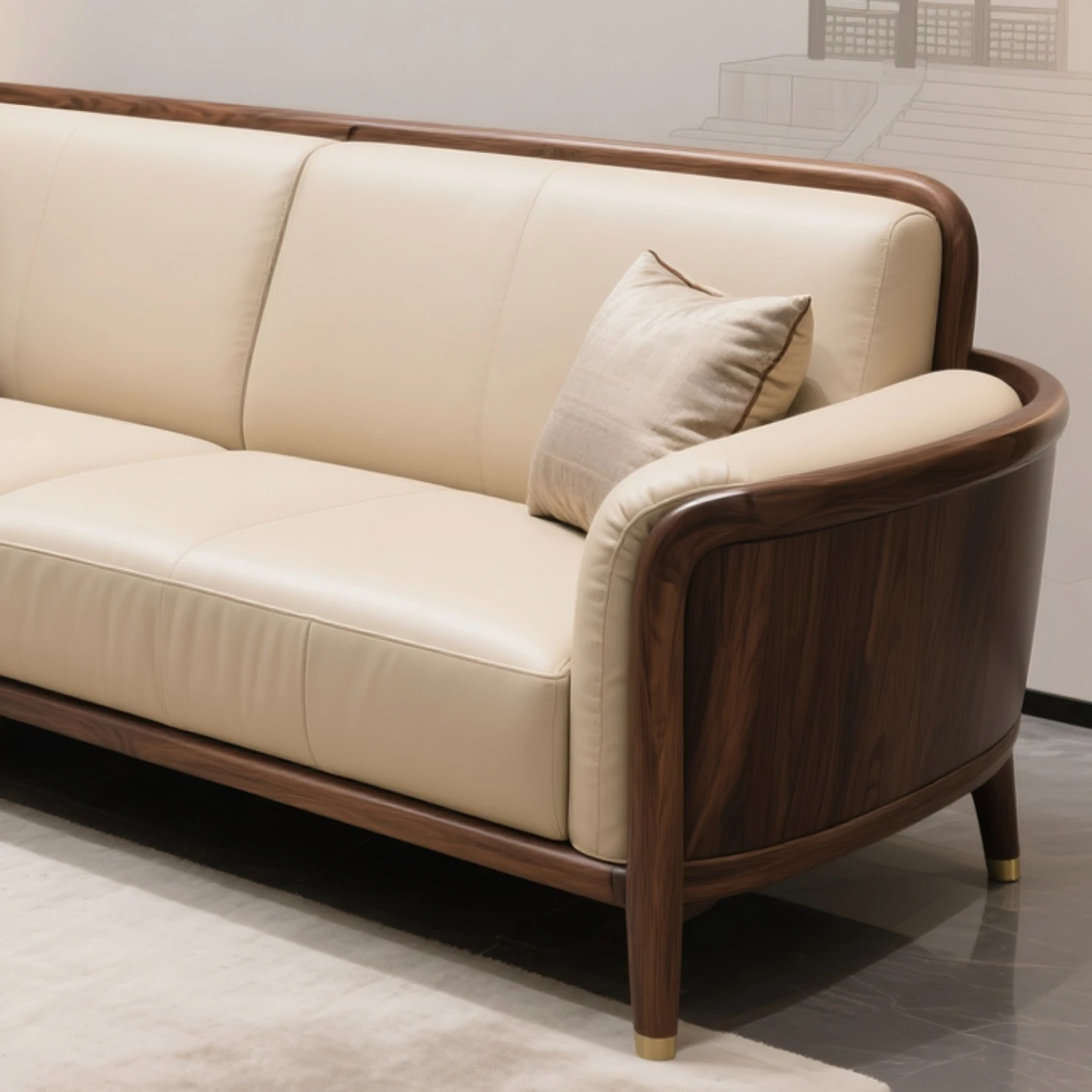 New Chinese Style Solid Wood Genuine Leather Sofa for Living Room and Office - North American Black Walnut Straight Reception Furniture for Model Homes