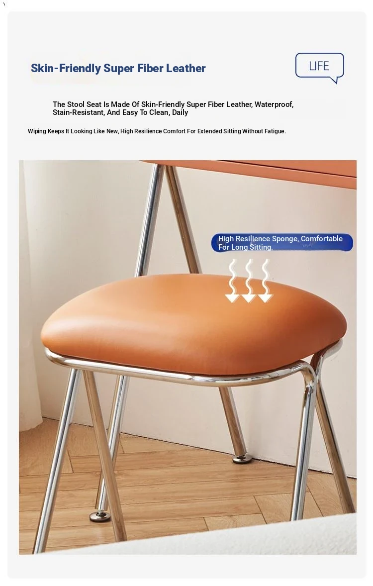 Nordic Style Makeup Stool for Women - Chic and Modern Vanity Chair with Soft Cushioning for Bedroom, Minimalist Designer Design, Perfect for Creating a Luxurious Touch to Your Space
