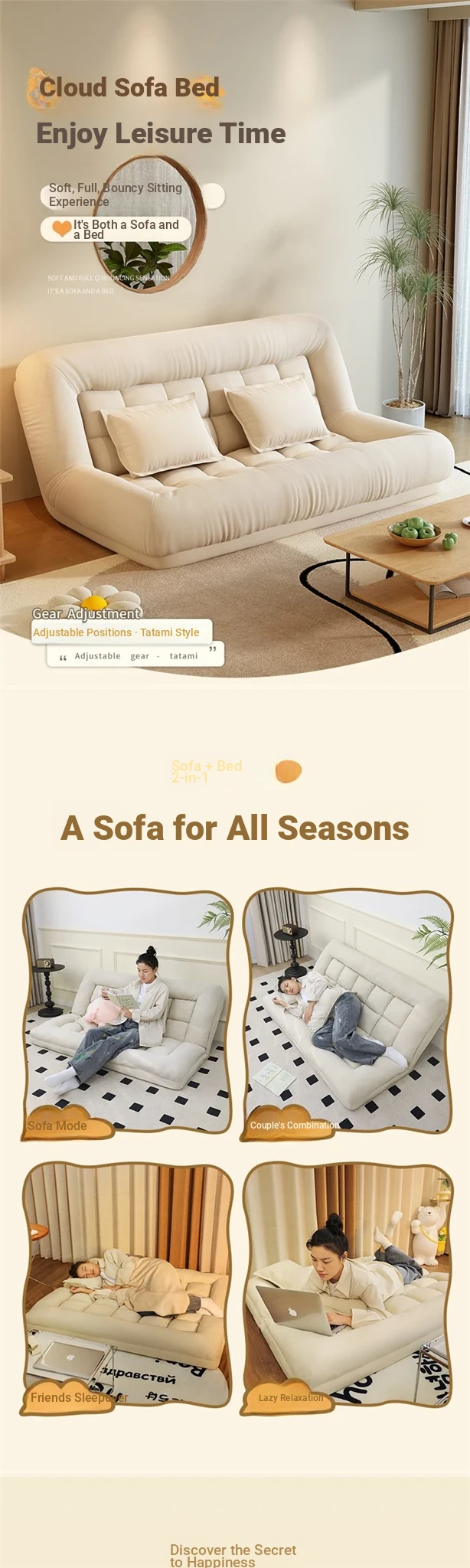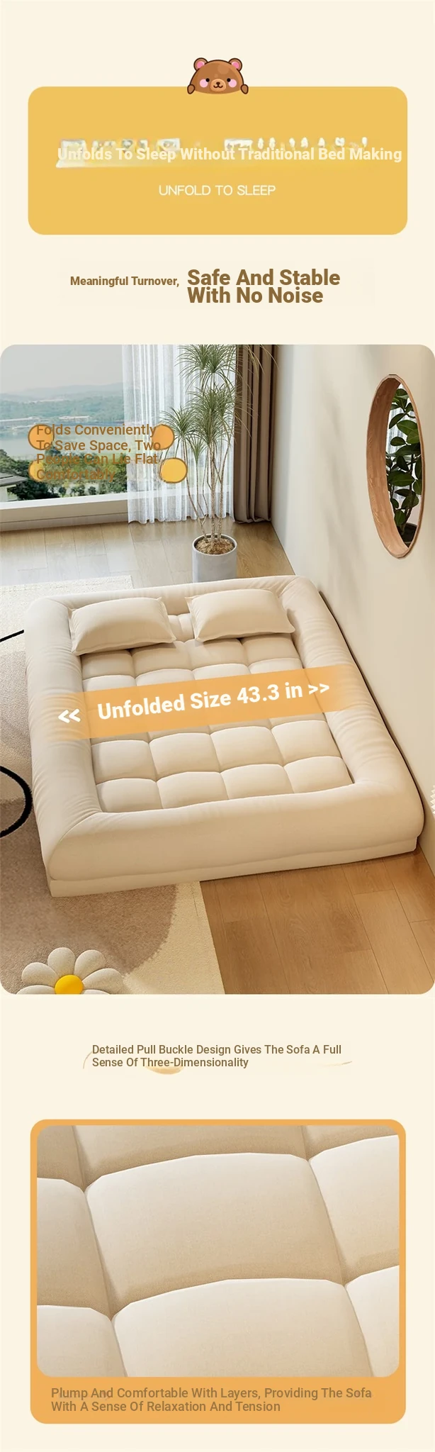 Sofa Bed 2-in-1: Minimalist Foldable Double Bed for Small Living Spaces – Stylish Lounge Chair for Bedroom and Tatami Use, Perfect for Sitting and Relaxing!