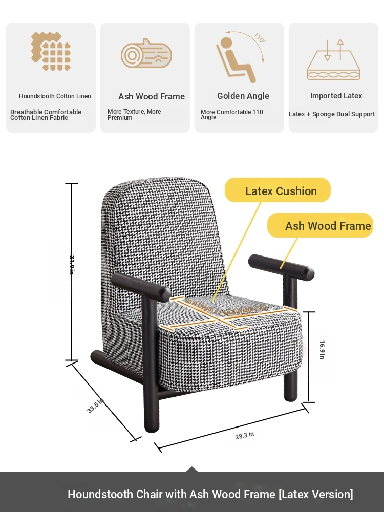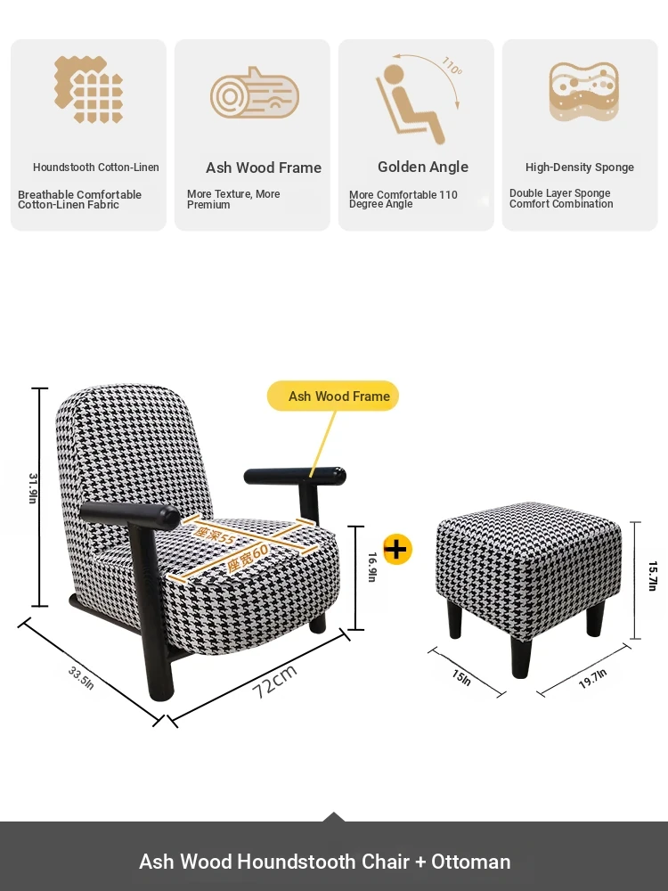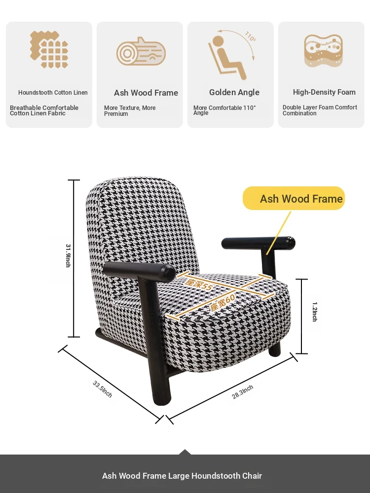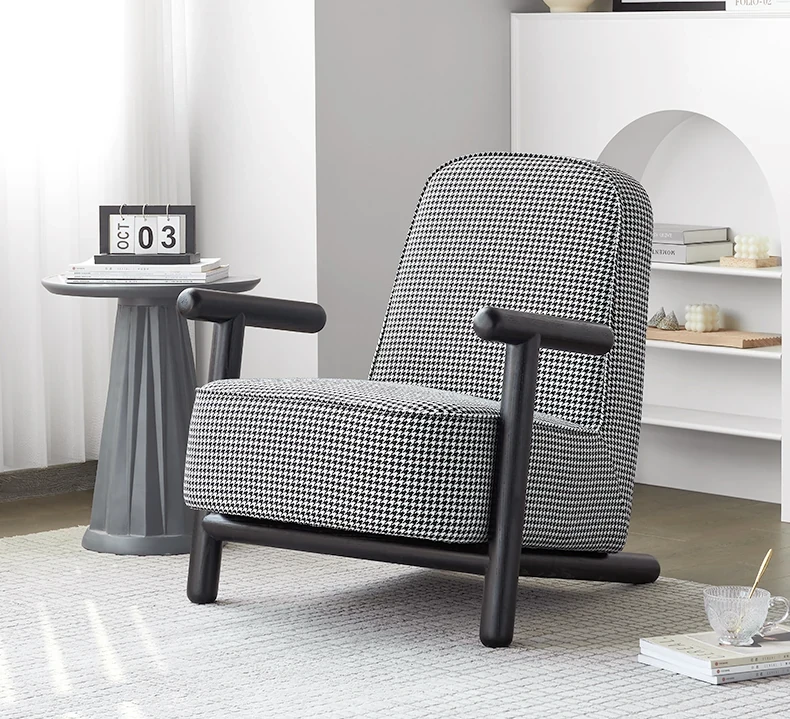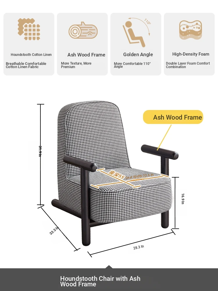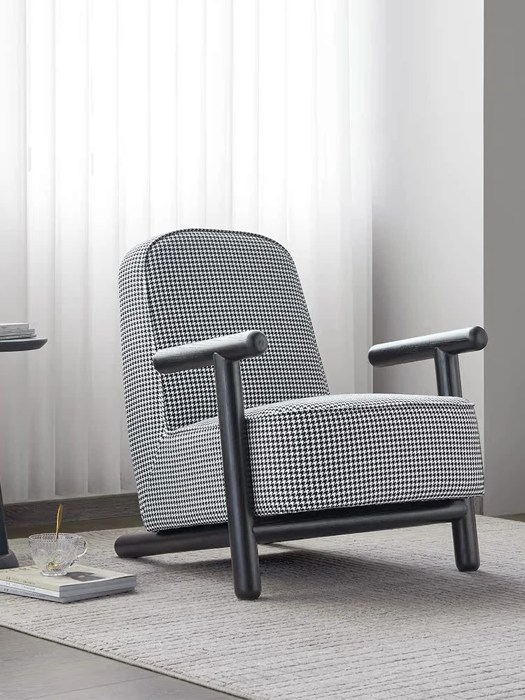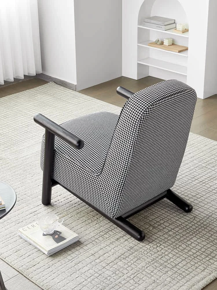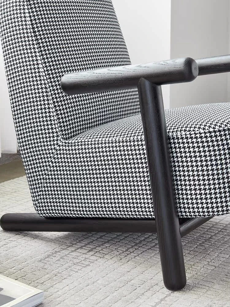 Solid Wood Single Sofa Chair - Stylish Armchair for Home, Living Room, and Balcony. Features a Chic Houndstooth Pattern, Perfect for Relaxation and Leisure. Ideal for Lazy Days!