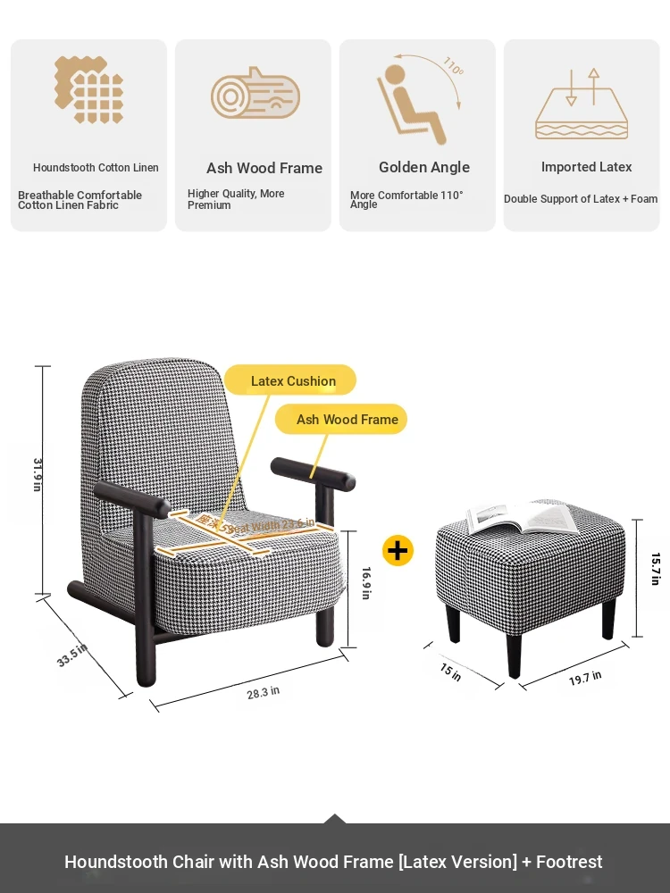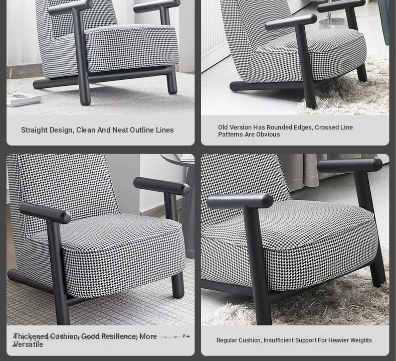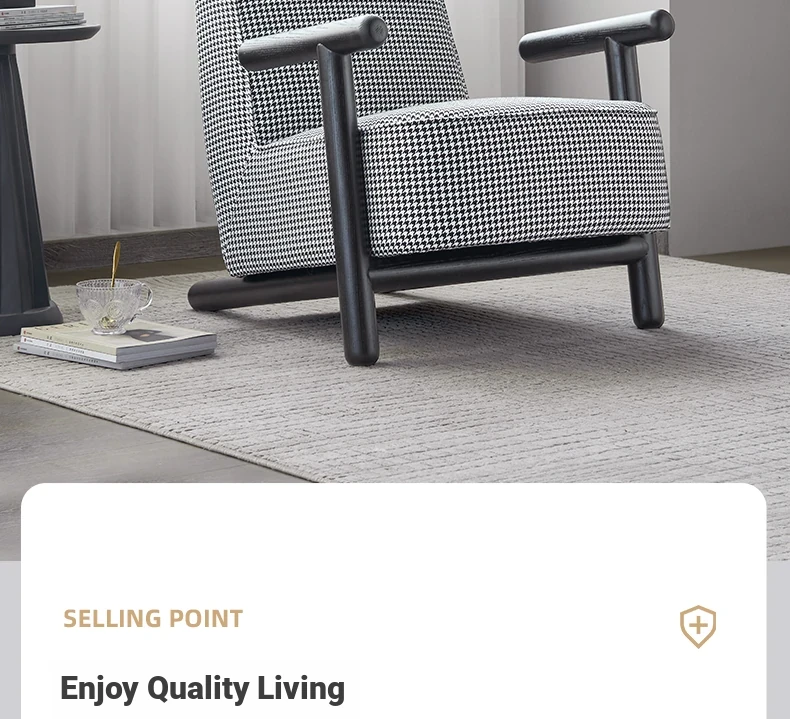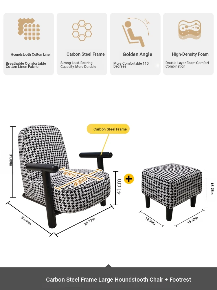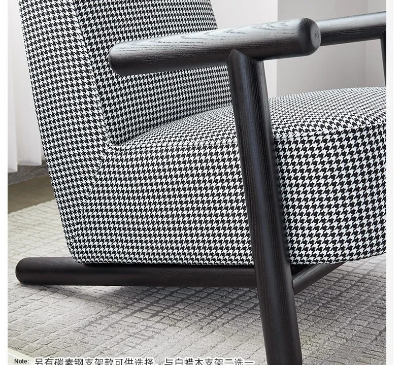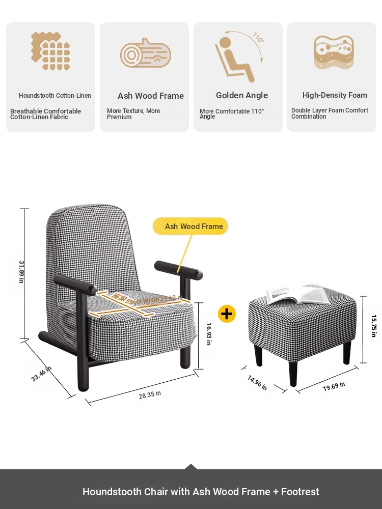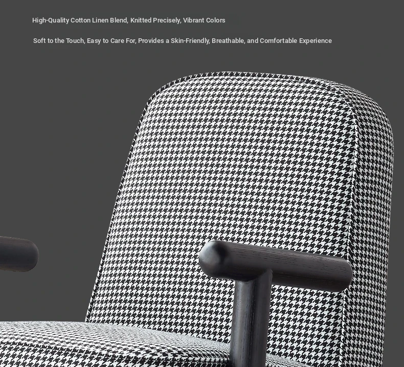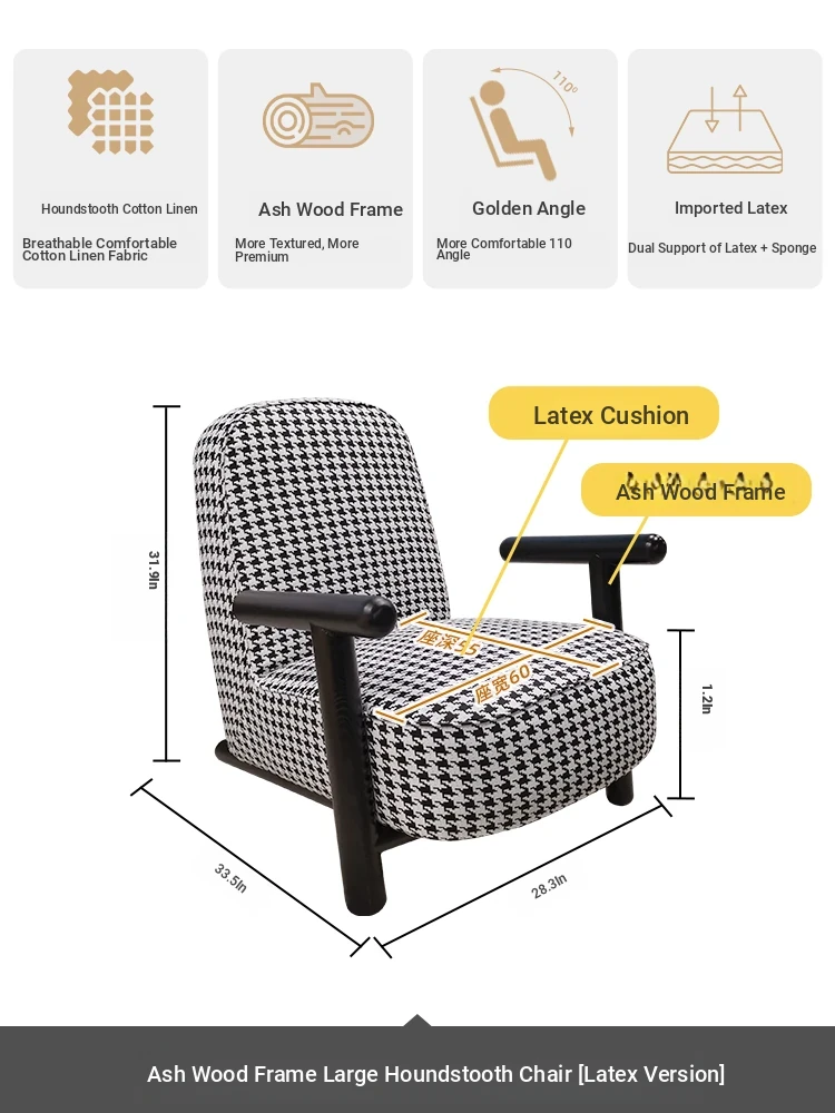 Solid Wood Single Sofa Chair - Stylish Armchair for Home, Living Room, and Balcony. Features a Chic Houndstooth Pattern, Perfect for Relaxation and Leisure. Ideal for Lazy Days!