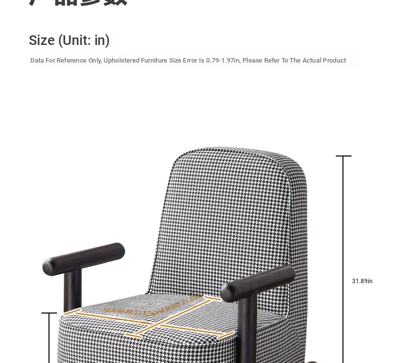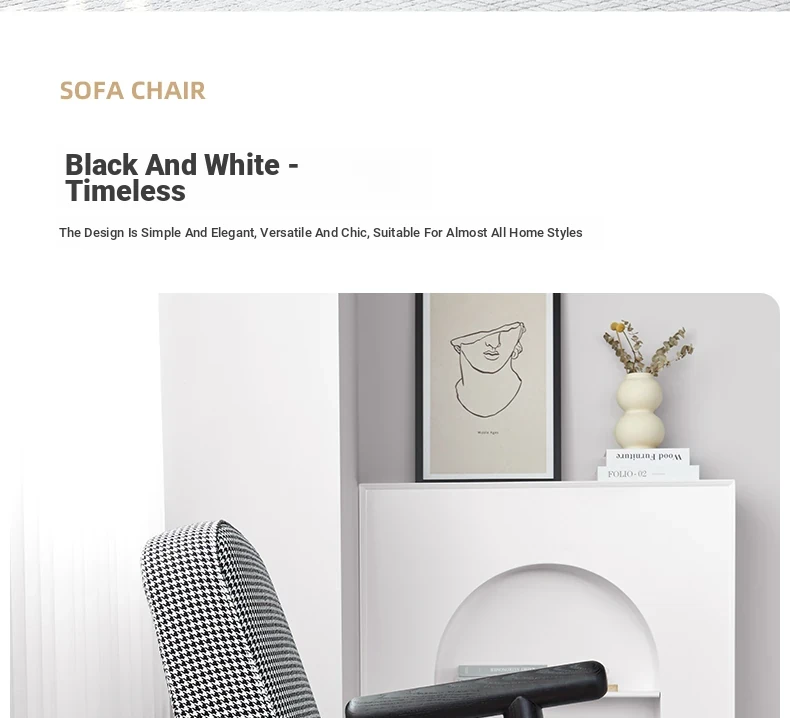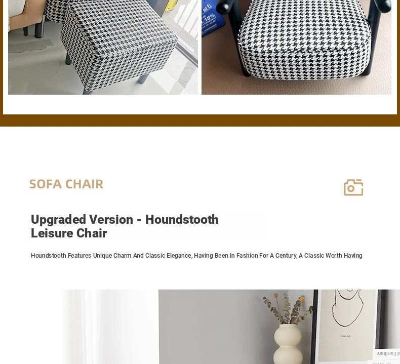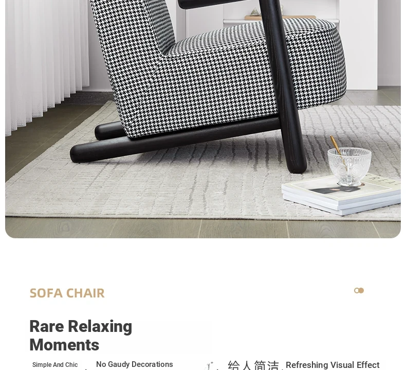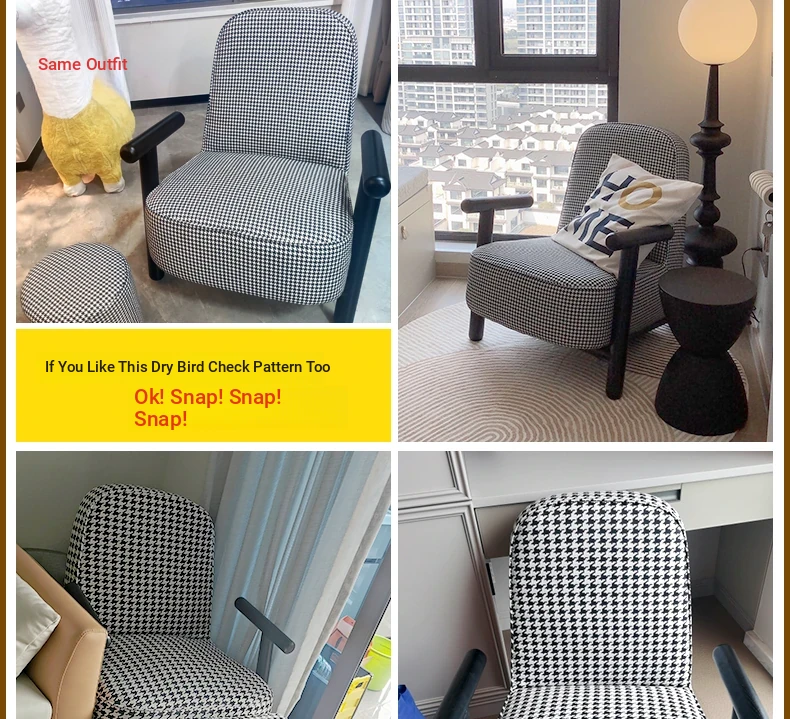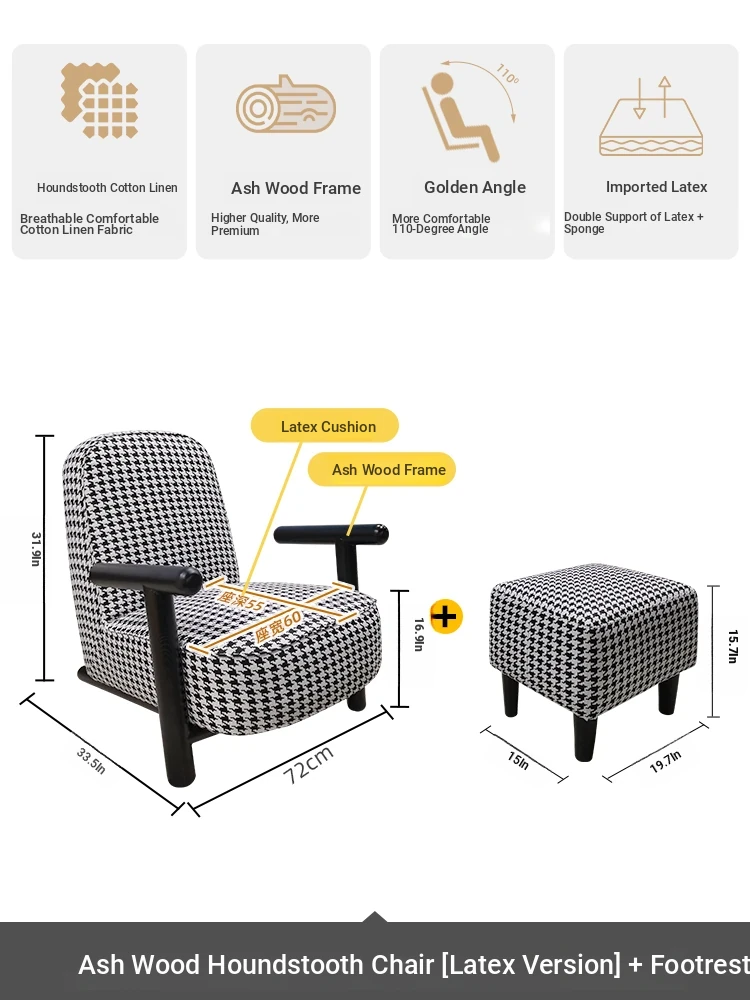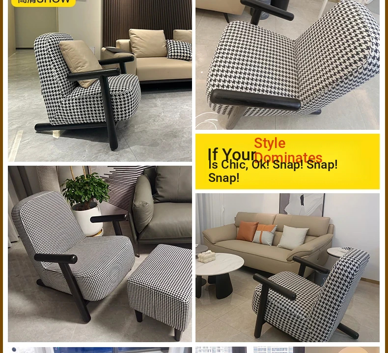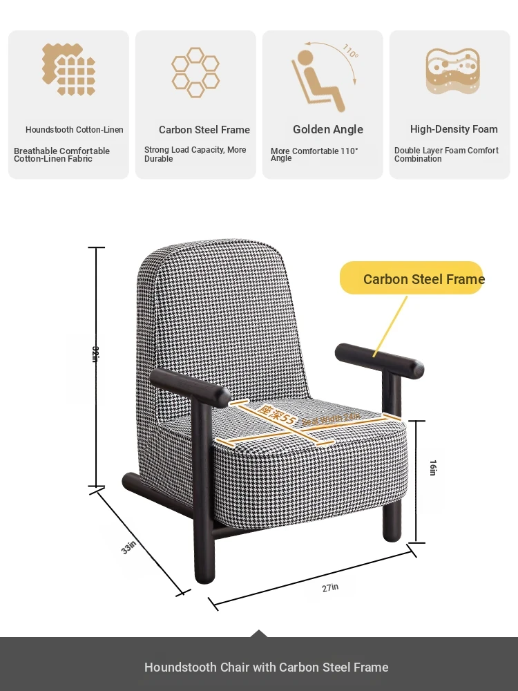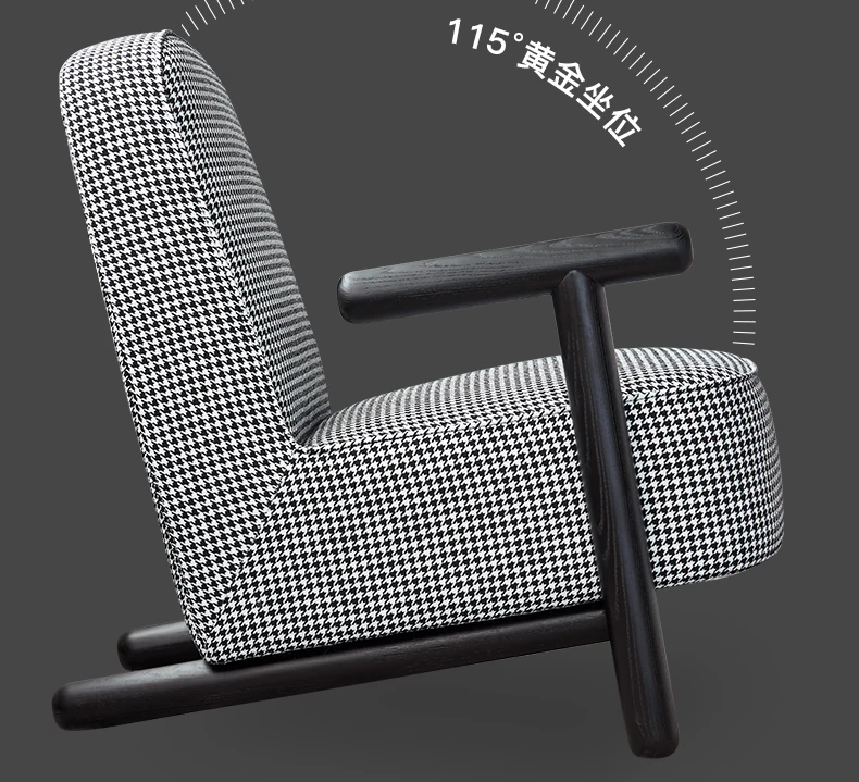Solid Wood Single Sofa Chair - Stylish Armchair for Home, Living Room, and Balcony. Features a Chic Houndstooth Pattern, Perfect for Relaxation and Leisure. Ideal for Lazy Days!