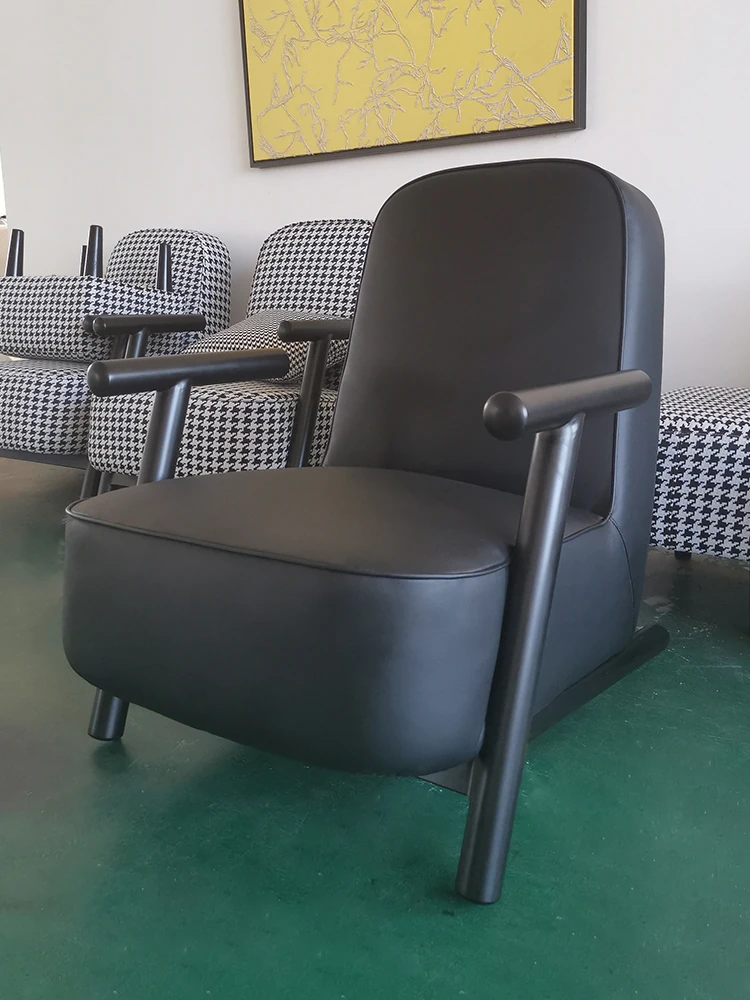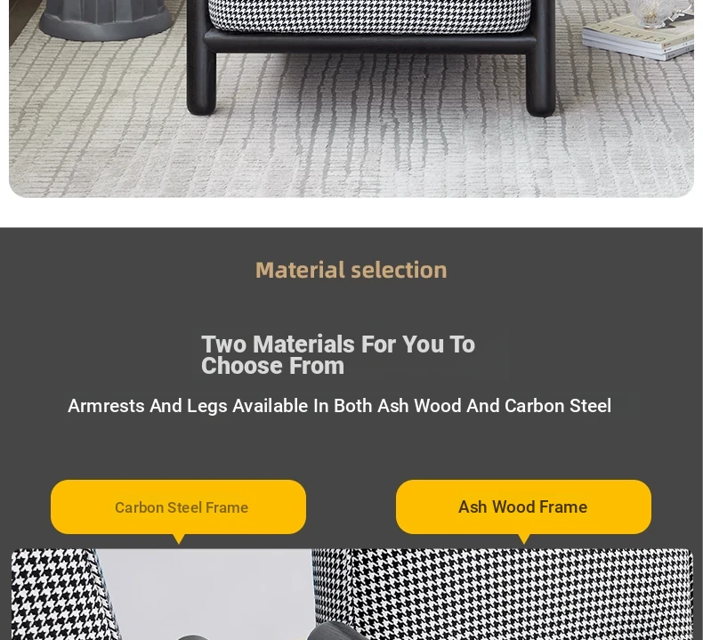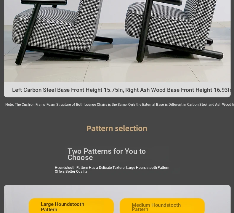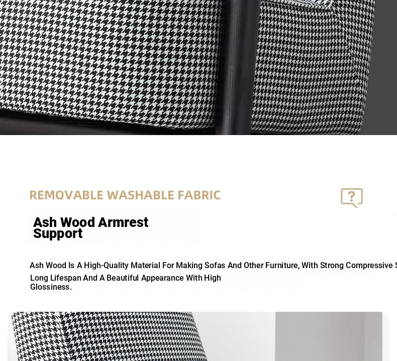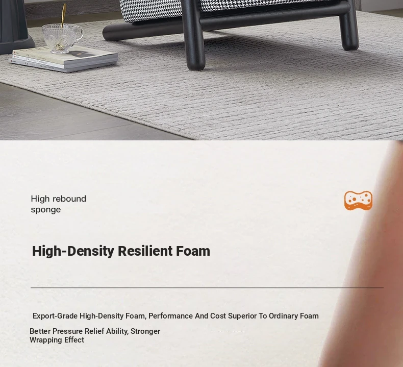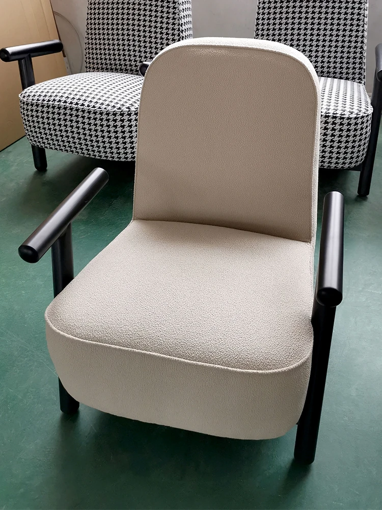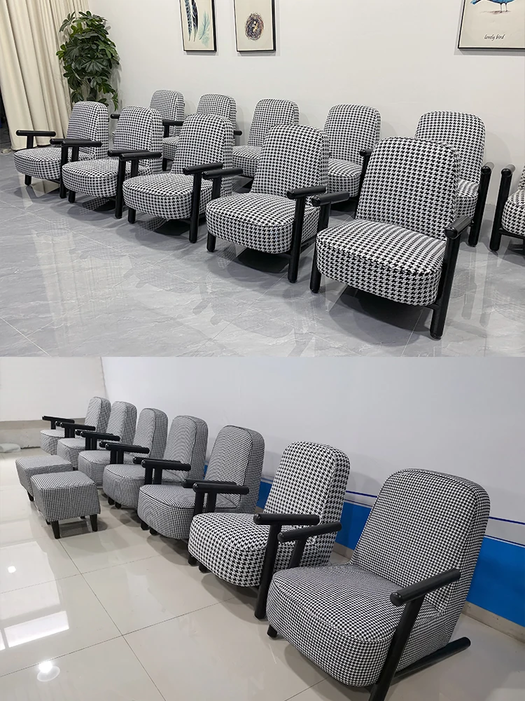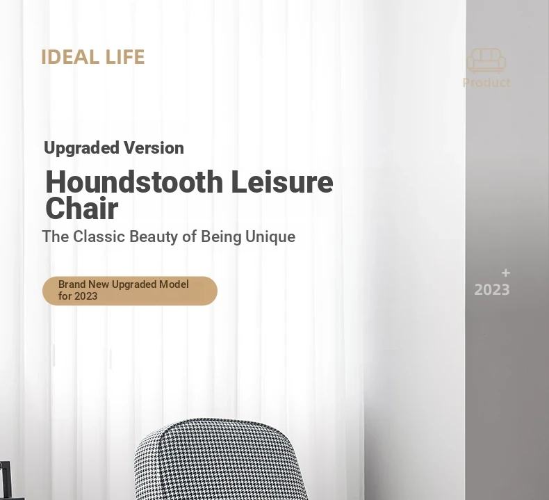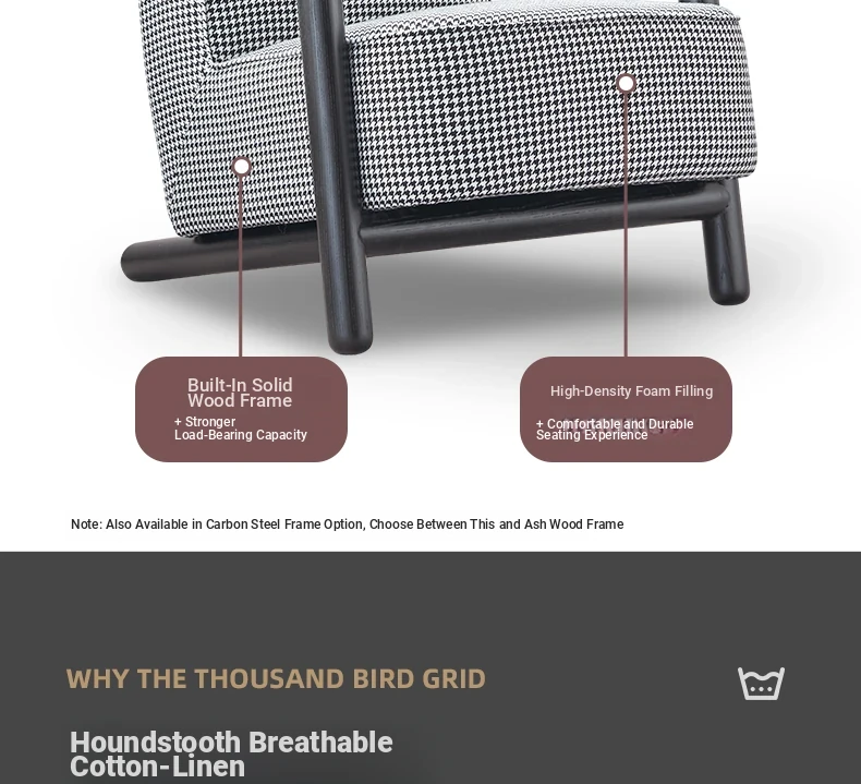 Solid Wood Single Sofa Chair - Stylish Armchair for Home, Living Room, and Balcony. Features a Chic Houndstooth Pattern, Perfect for Relaxation and Leisure. Ideal for Lazy Days!