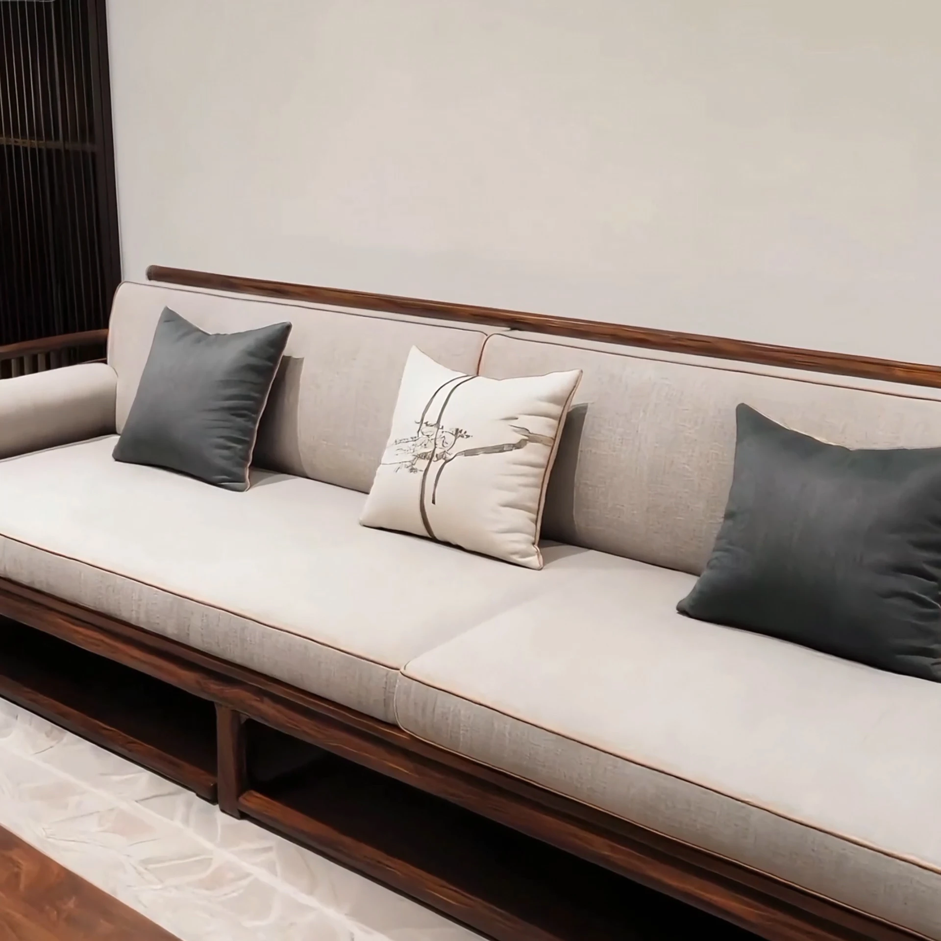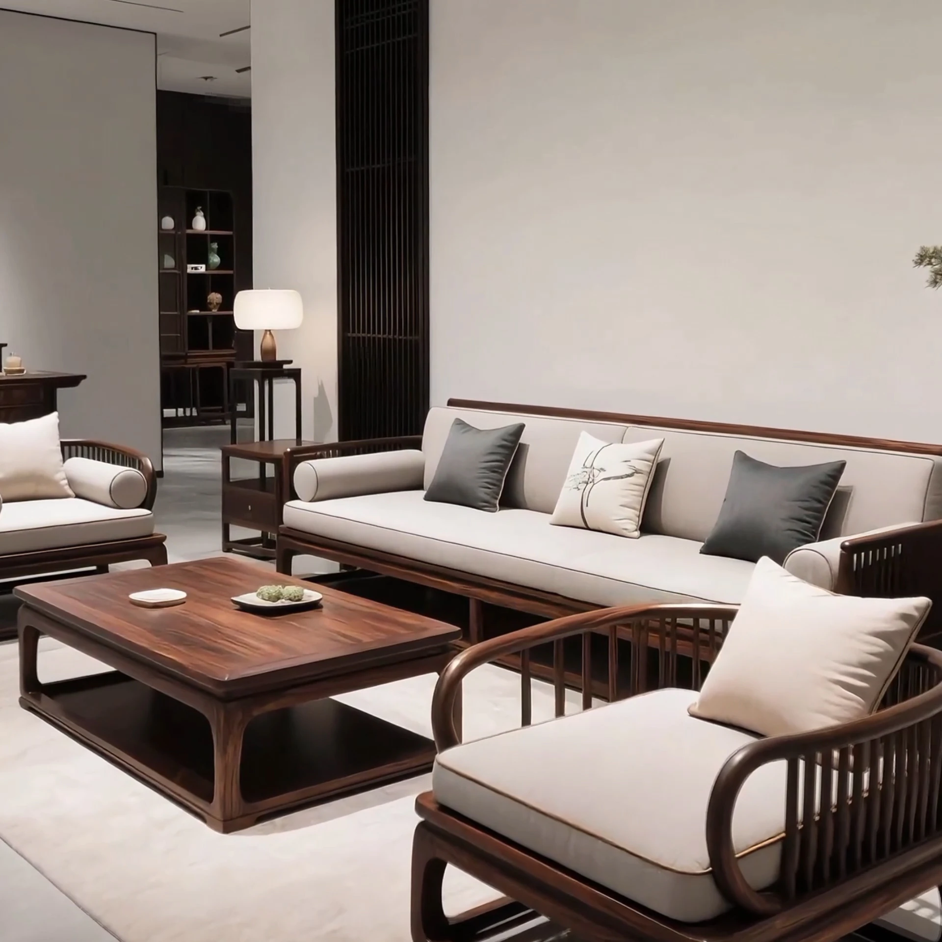 Stylish New Chinese-Style Sofa Set in North American Black Walnut – Elegant Solid Wood Living Room Seating with Song Dynasty Aesthetics for Office Reception and Guest Areas