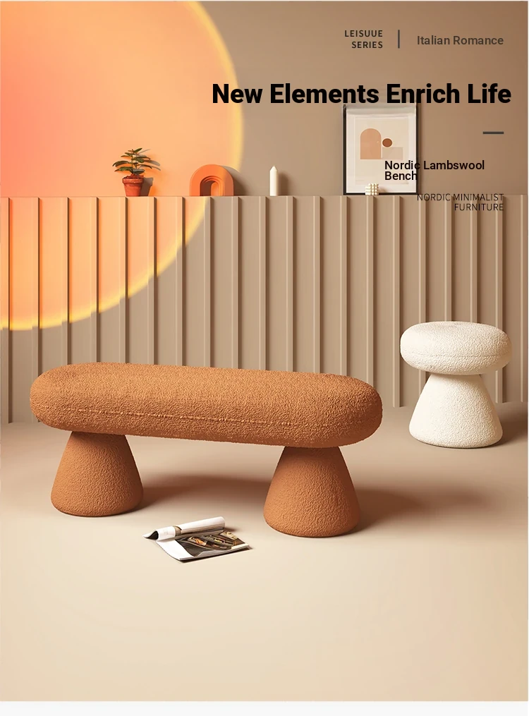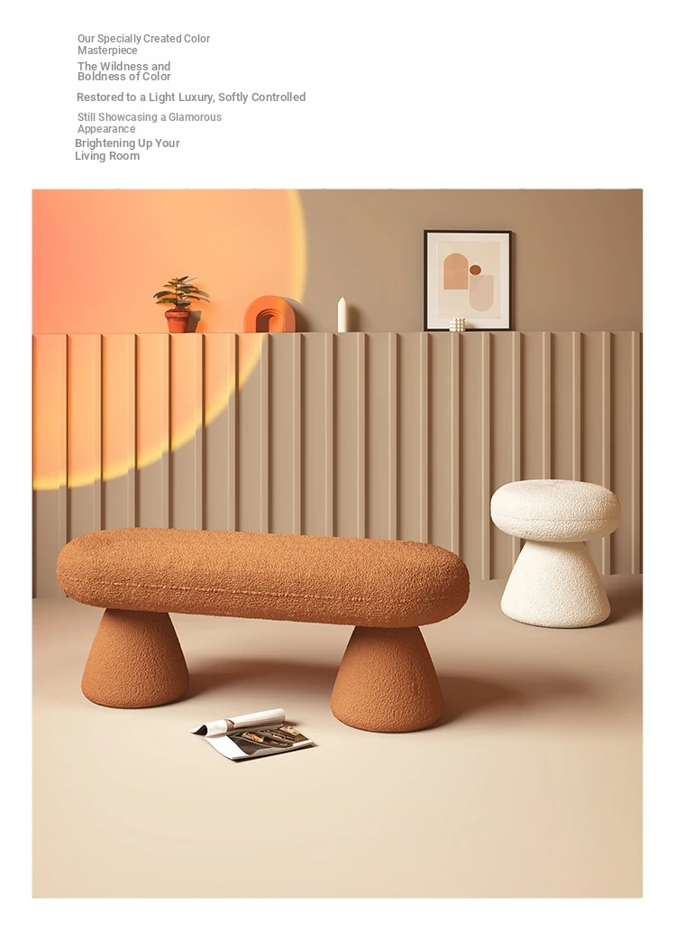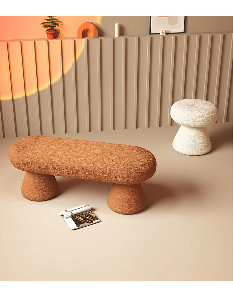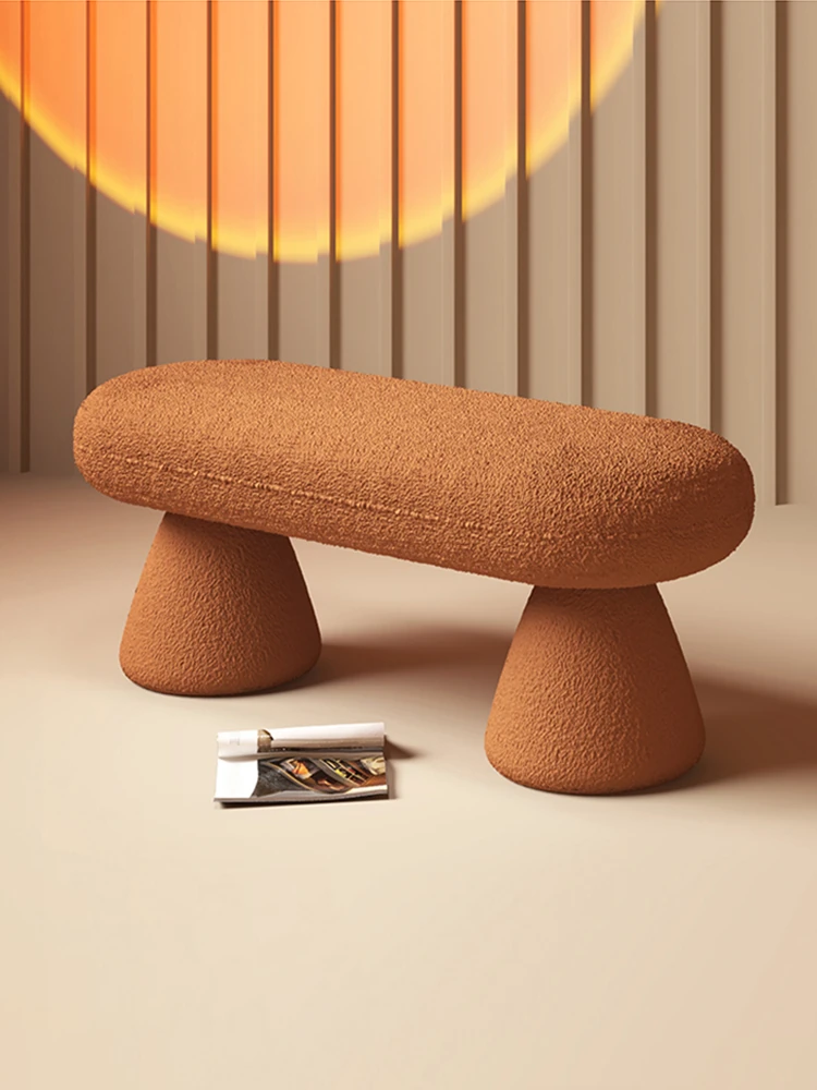 Trendy Lamb Fleece Vanity Stool for Fashion Stores - Stylish Entryway Shoe Bench and Makeup Chair for Home Use, Perfect for Dressing Up Your Space!