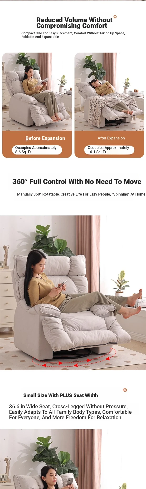 Versatile Lazy Sofa Chair - Sleep, Lounge, and Relax! Perfect for Bedrooms and Living Rooms, this Rotatable Single Sofa is Ideal for Leisure Time.