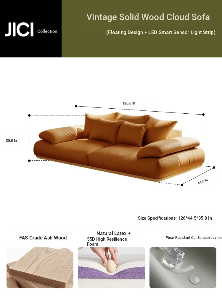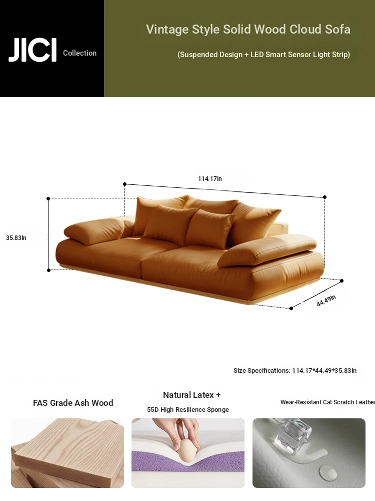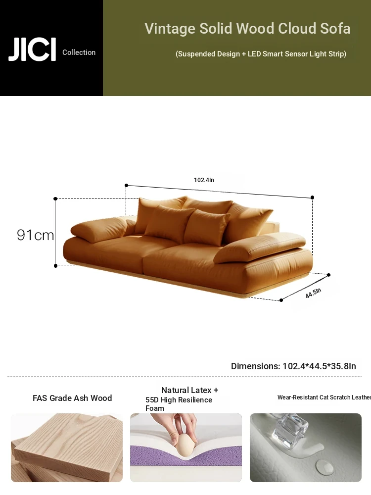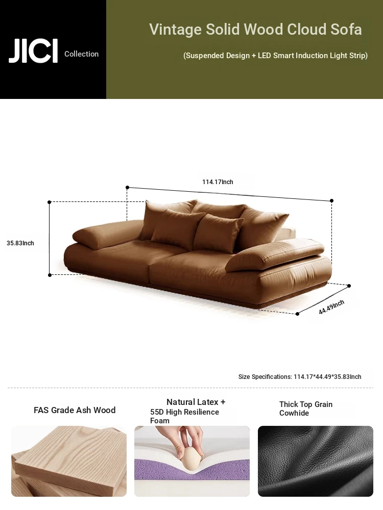 Thickened Abrasion Resistant SSS class-first layer cowhide 90.55in-suspension sofa
