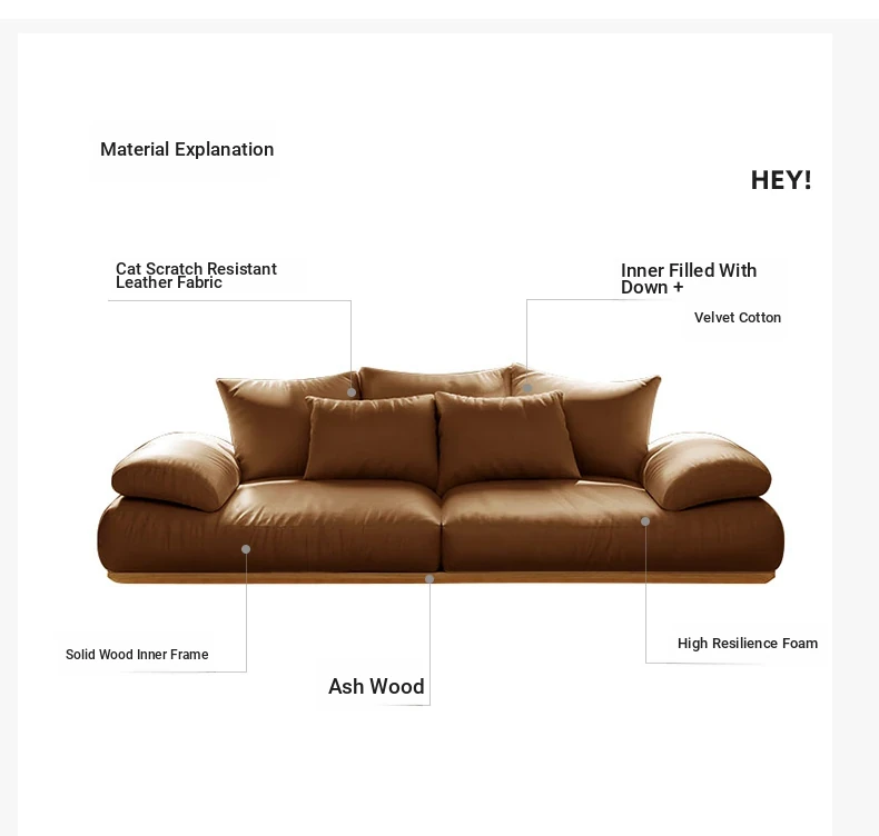 Thickened Abrasion Resistant SSS class-first layer cowhide 102.36in-suspension sofa