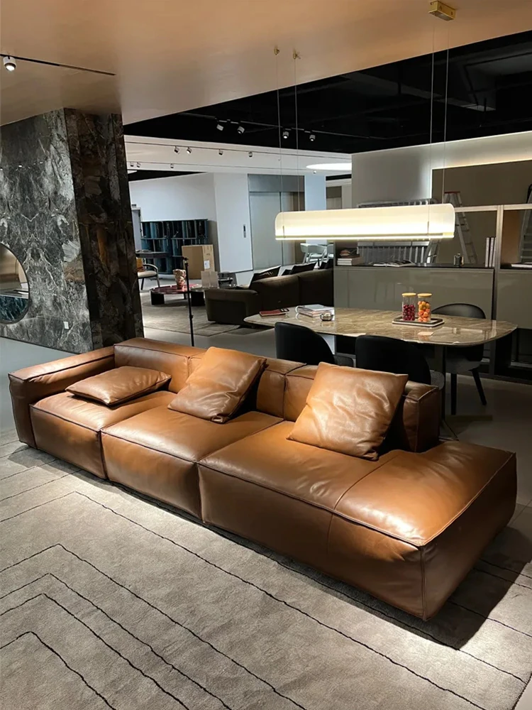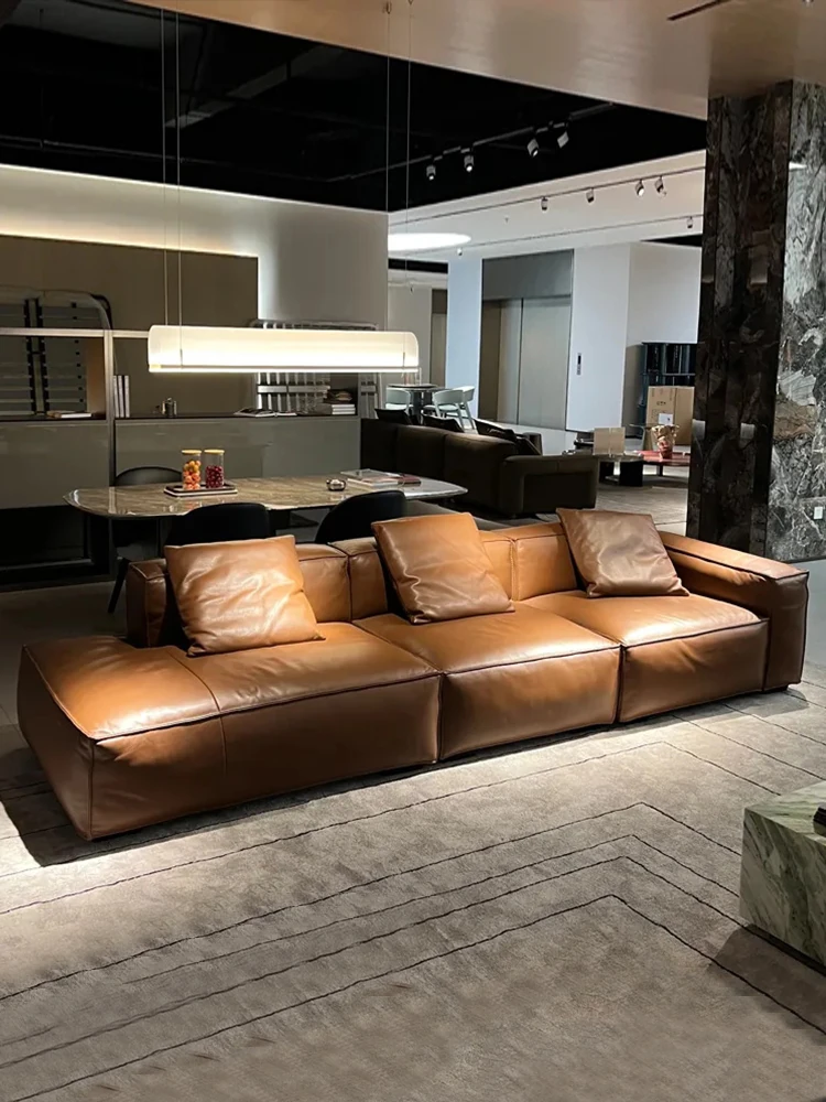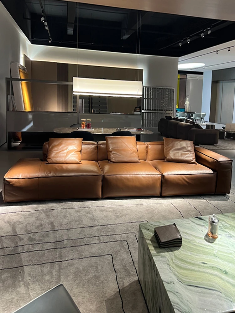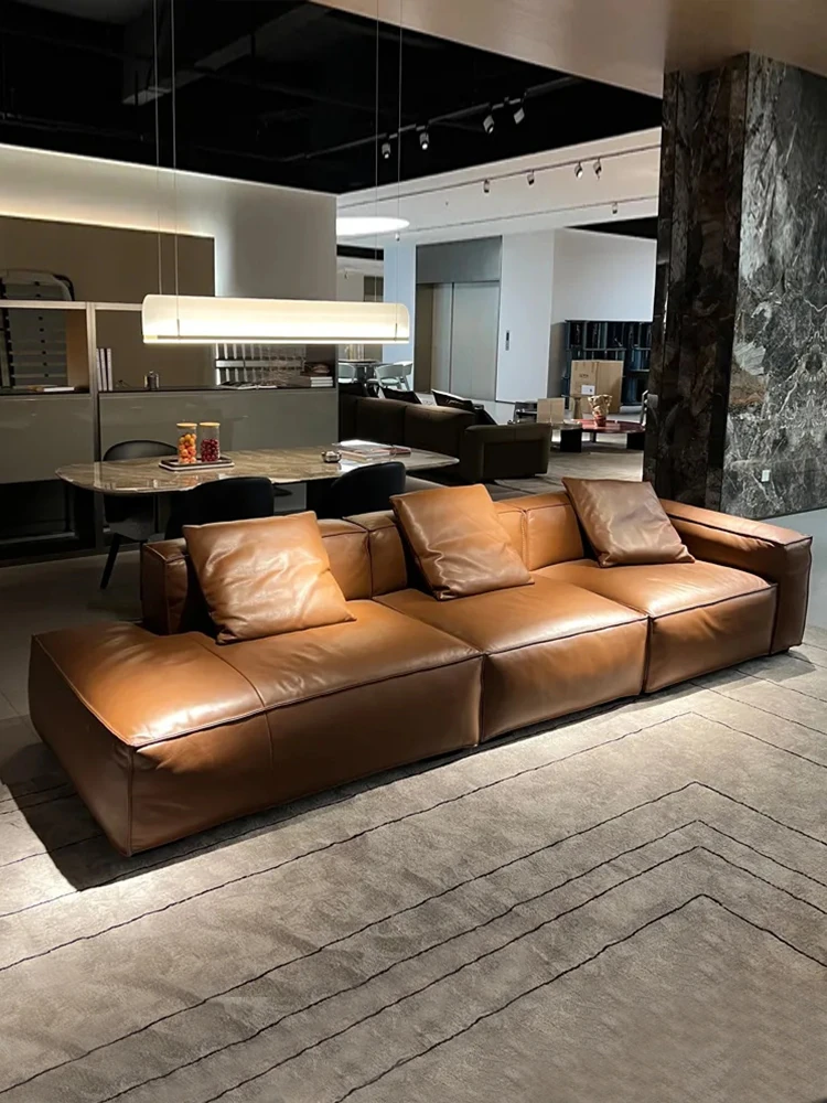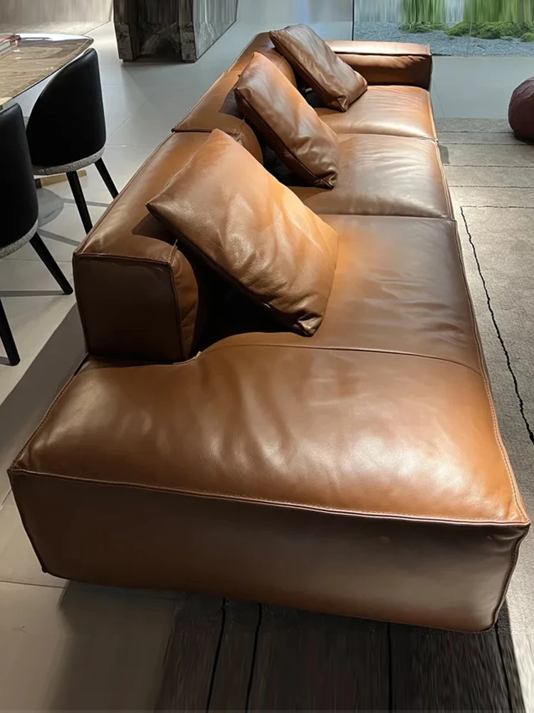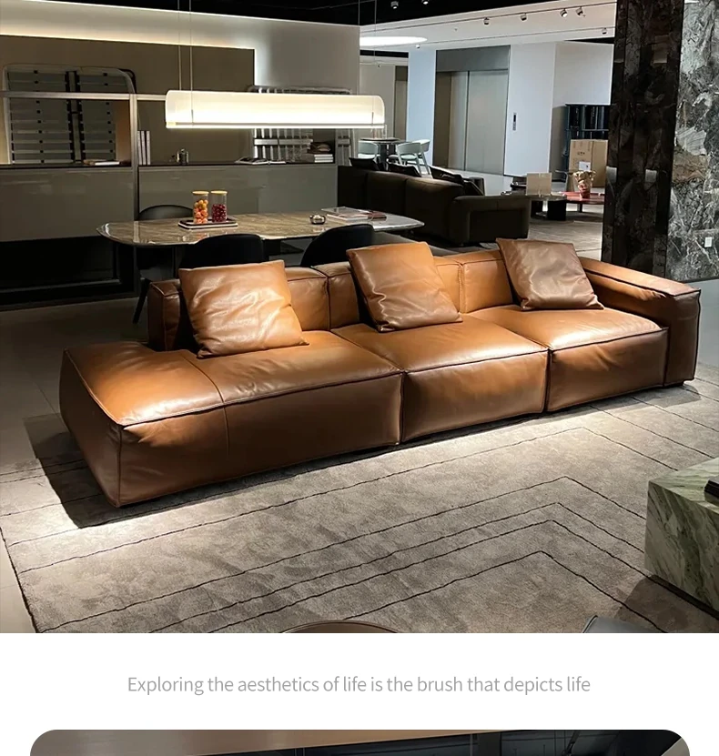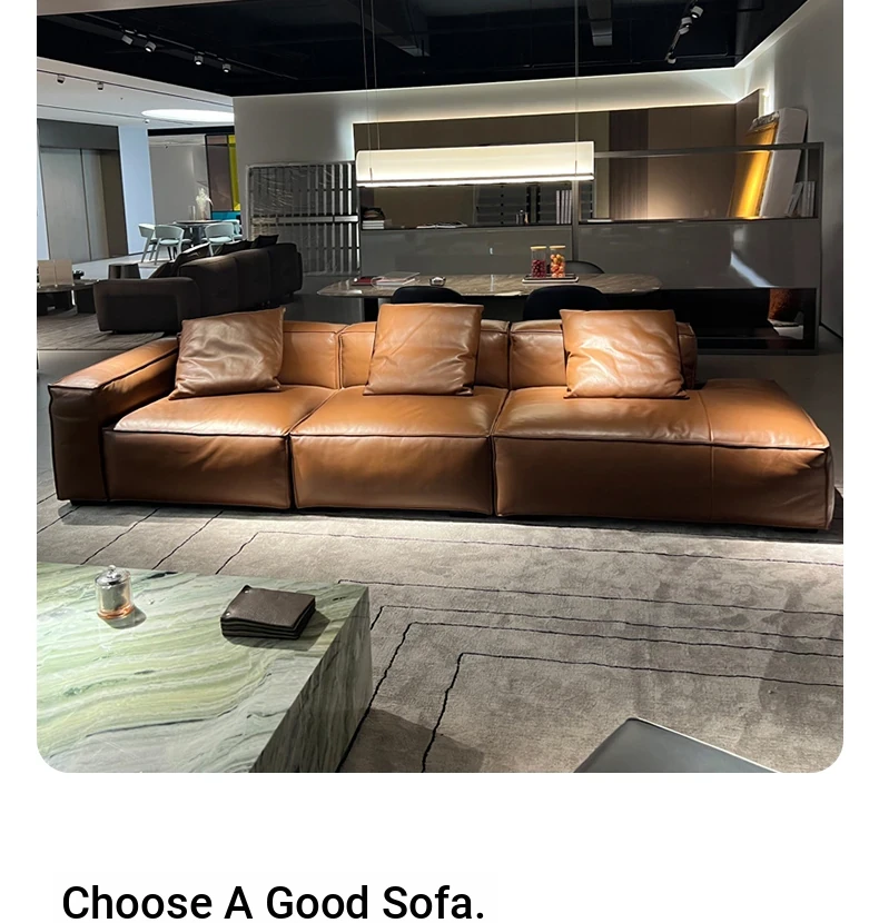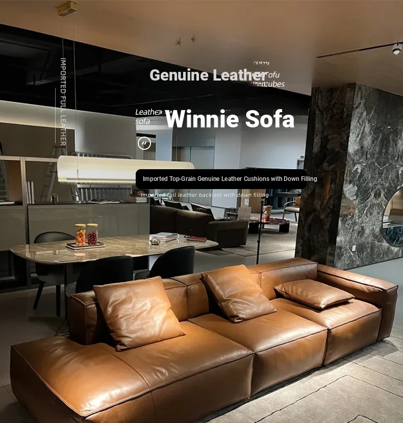 Winnie Italian Minimalist Sofa - Luxurious Genuine Leather & Soft Suede Upholstery - Stylish Full Leather 4-Seater Sofa, Perfect for Modern Living Spaces