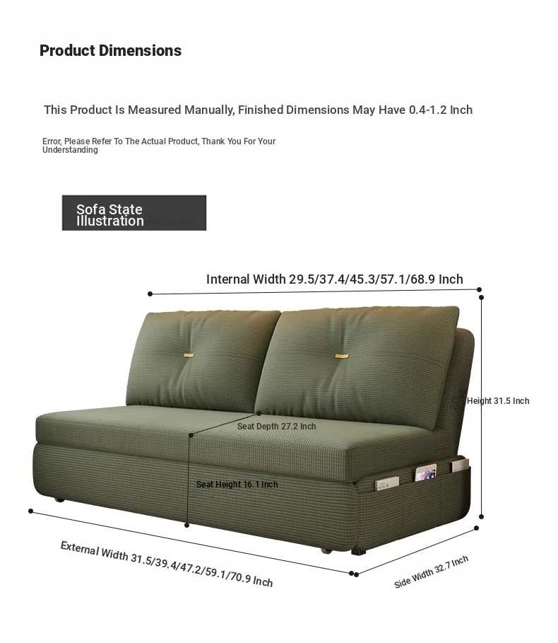 Xiong Jue Convertible Sofa Bed - Space-Saving, Stylish Design for Small Apartments, Perfect for Living Rooms and Balconies, Comfortable for Singles and Couples, Trendy and Functional Furniture Solution!