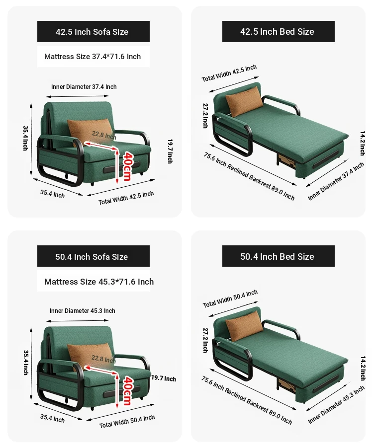 42.52 in [2.76in high density sponge] with storage(Color contact customer service)