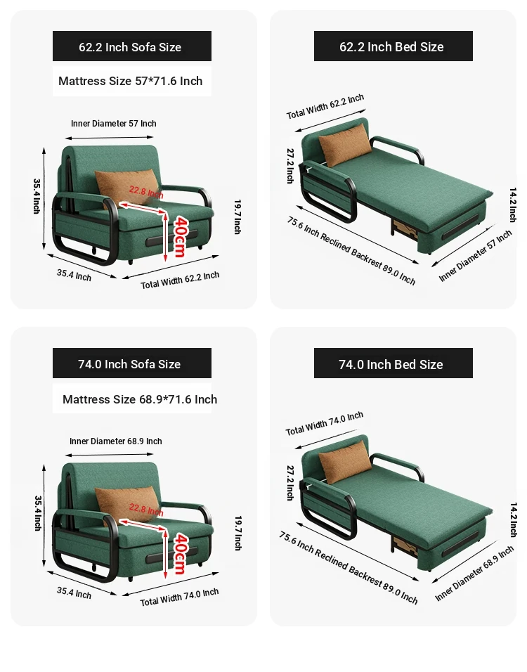 74.02 in [2.76in high density sponge] with storage(Color contact customer service)