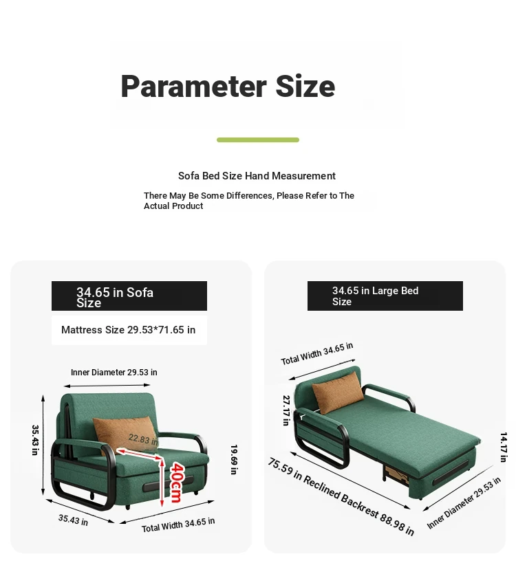 34.65 in [2.76in high density sponge] with storage(Color contact customer service)