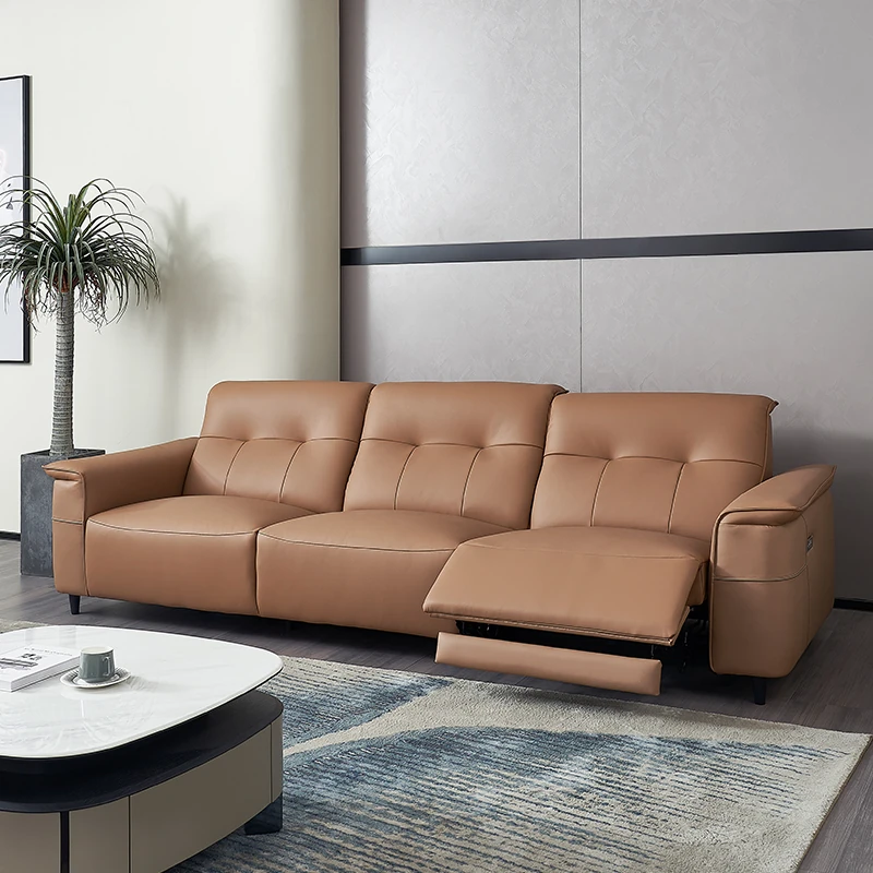 イタリアンミニマリストデザインの本革ピクセルソファ|広々としたリビングに最適|高級牛革使用|電動機能付き|贅沢な快適さを実現!
