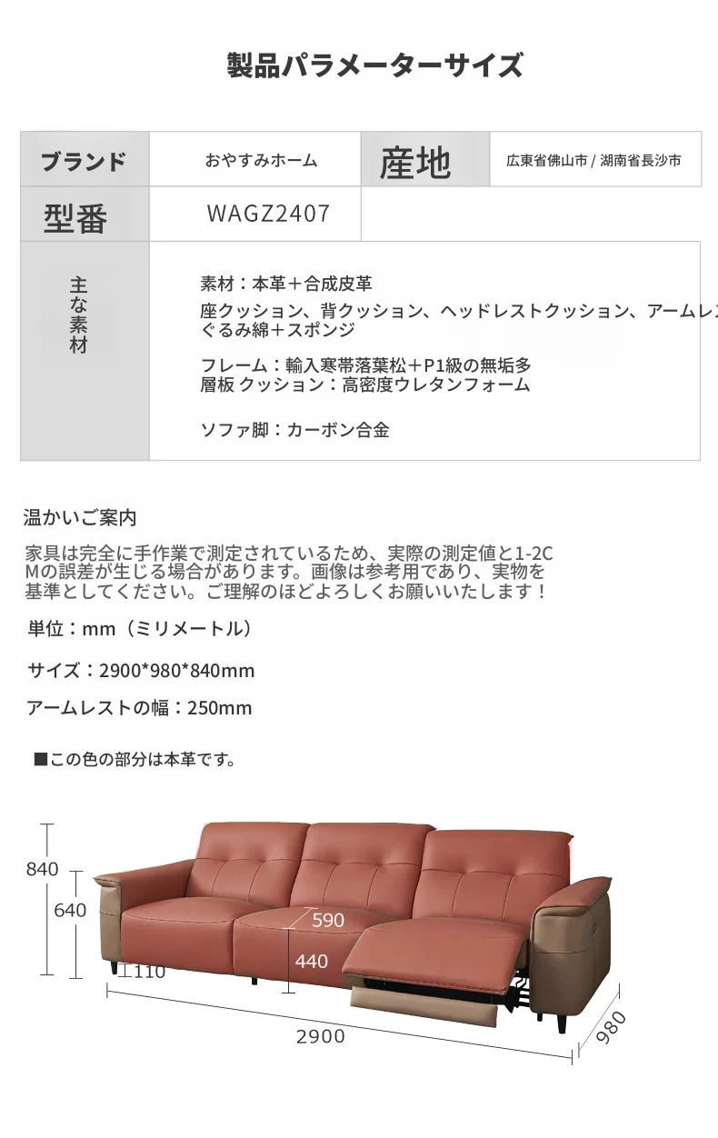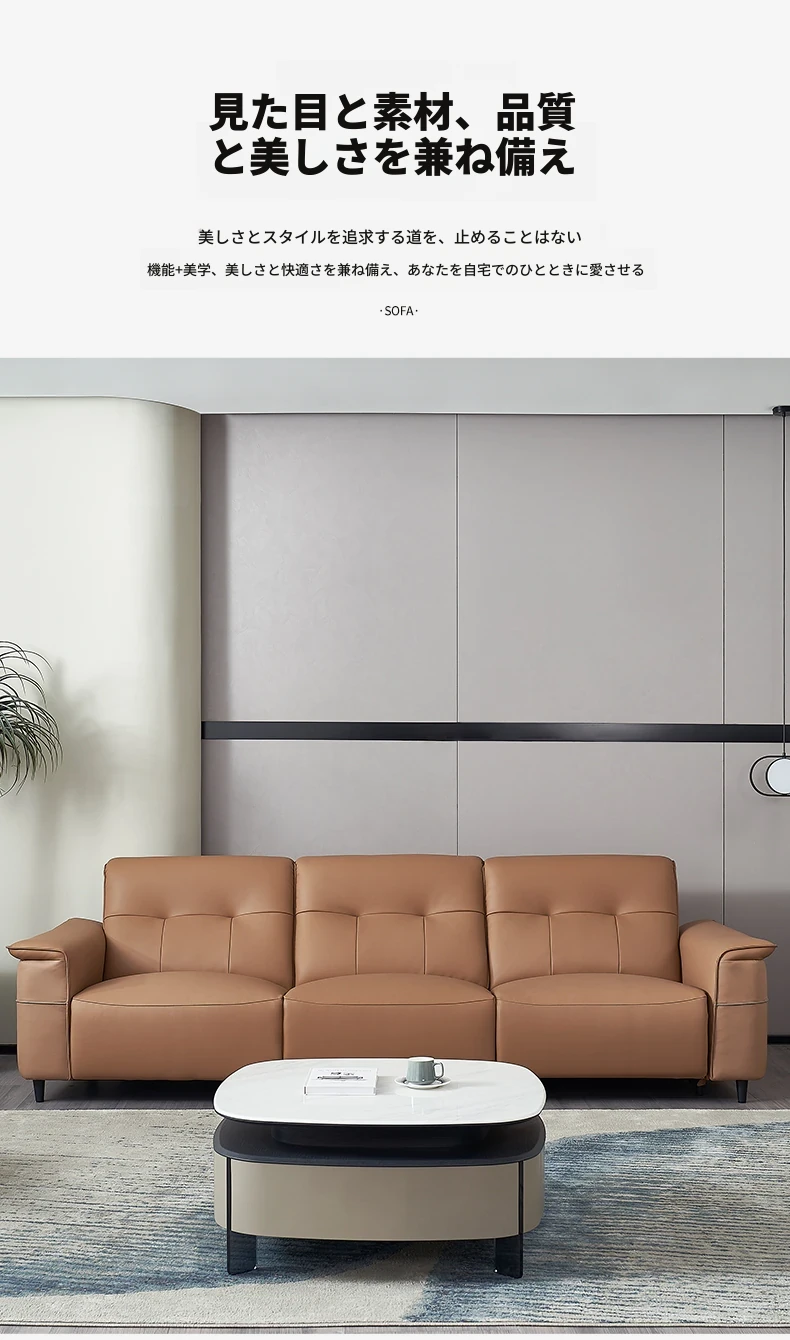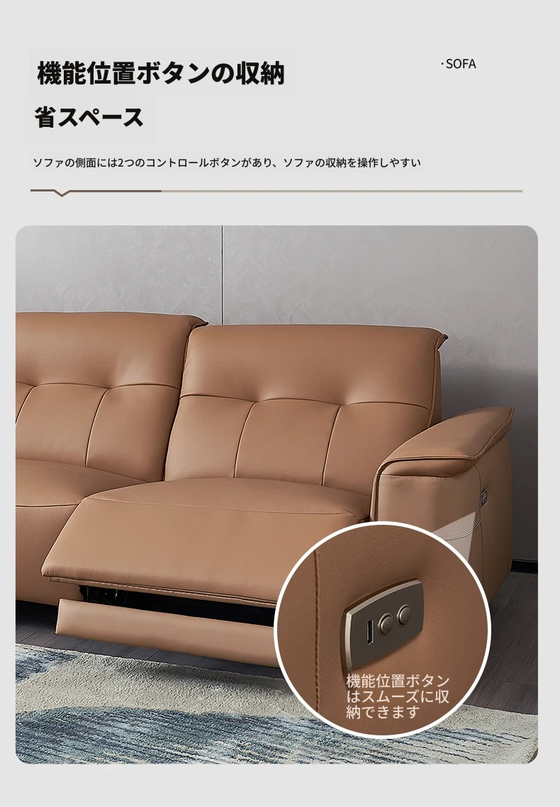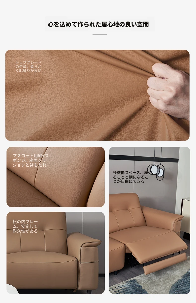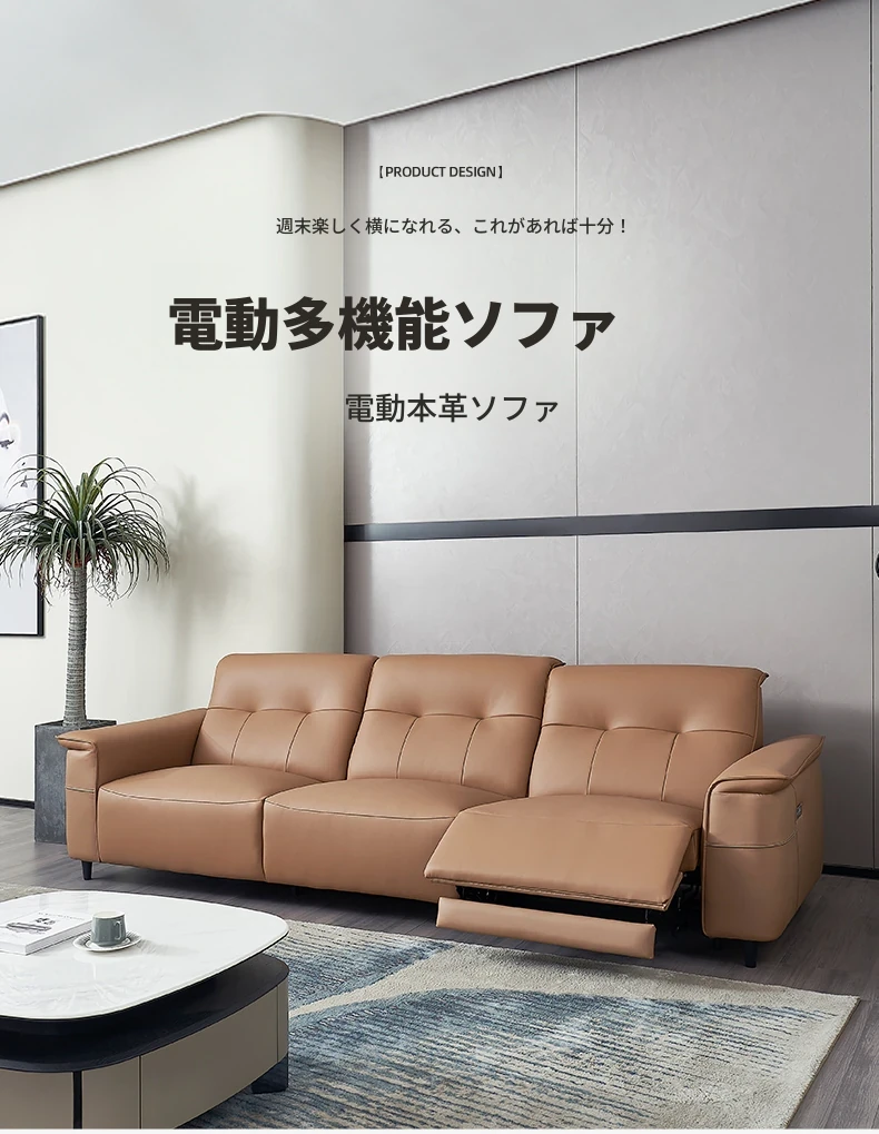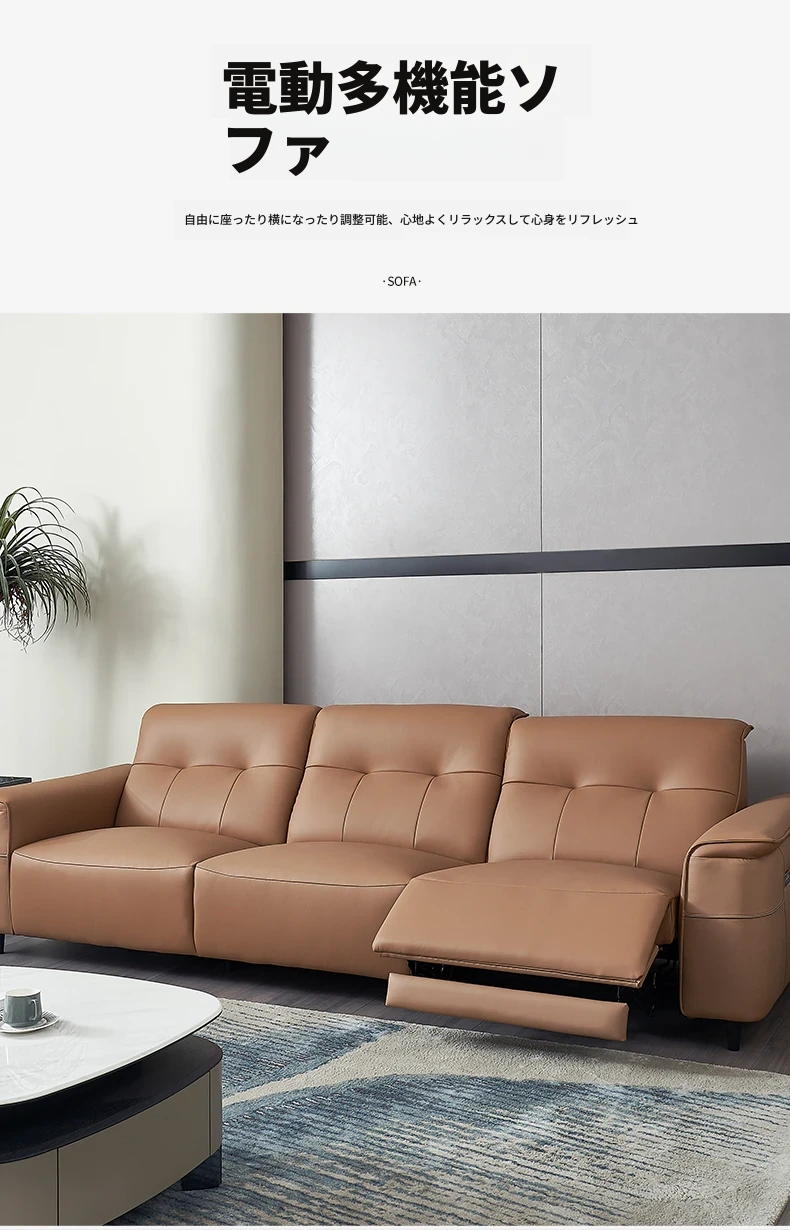 おやすみソファ 高品質本革使用のリビング用ソファ 2024年新作 多機能電動リクライニングソファで、快適なひとときをお届けします!