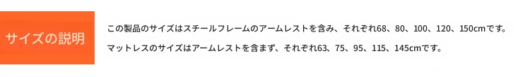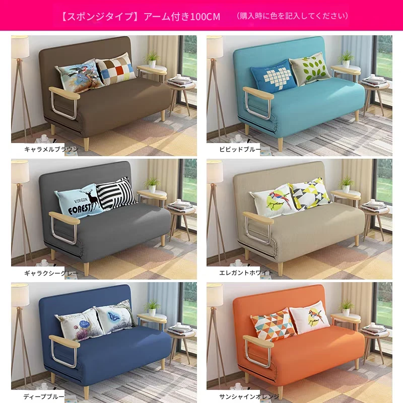 【コットンリネン100cmサンシャインオレンジ】金属+オークアームレスト二人用ソファベッド スポンジタイプ