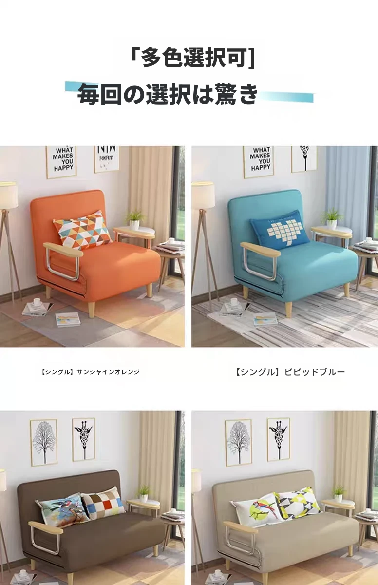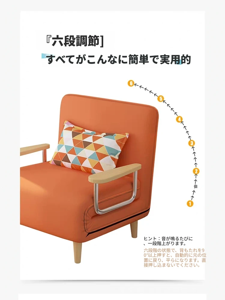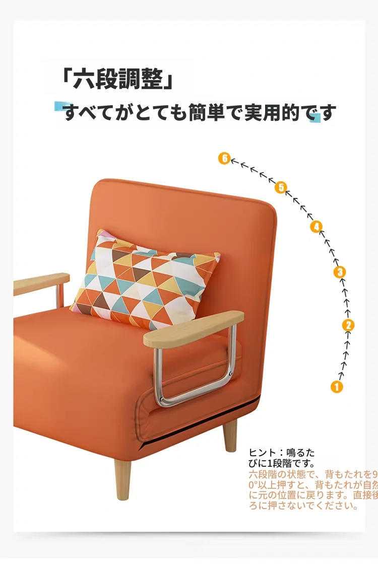 【コットンリネン80cmサンシャインオレンジ】金属+オークアームレスト一人用ソファベッド スポンジタイプ