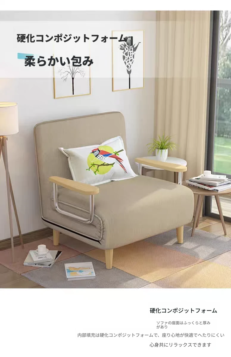 【コットンリネン68cmギャラクシーグレー】金属+オークアームレスト一人用ソファベッド スポンジタイプ