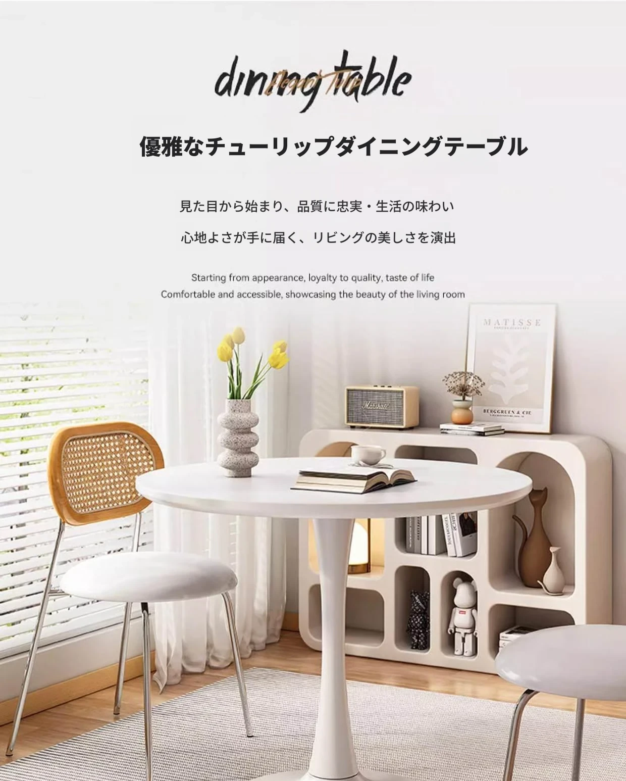【ダイニングテーブル】白色60*60*73cm、18mm天板