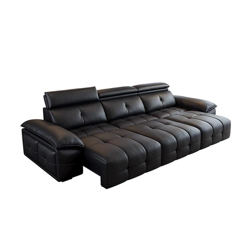 Elegant Modern Italian Leather Sofa Bed A2560# in Black - Piano Key Design for a Chic and Luxurious Living Space, Perfect for New Homeowners!