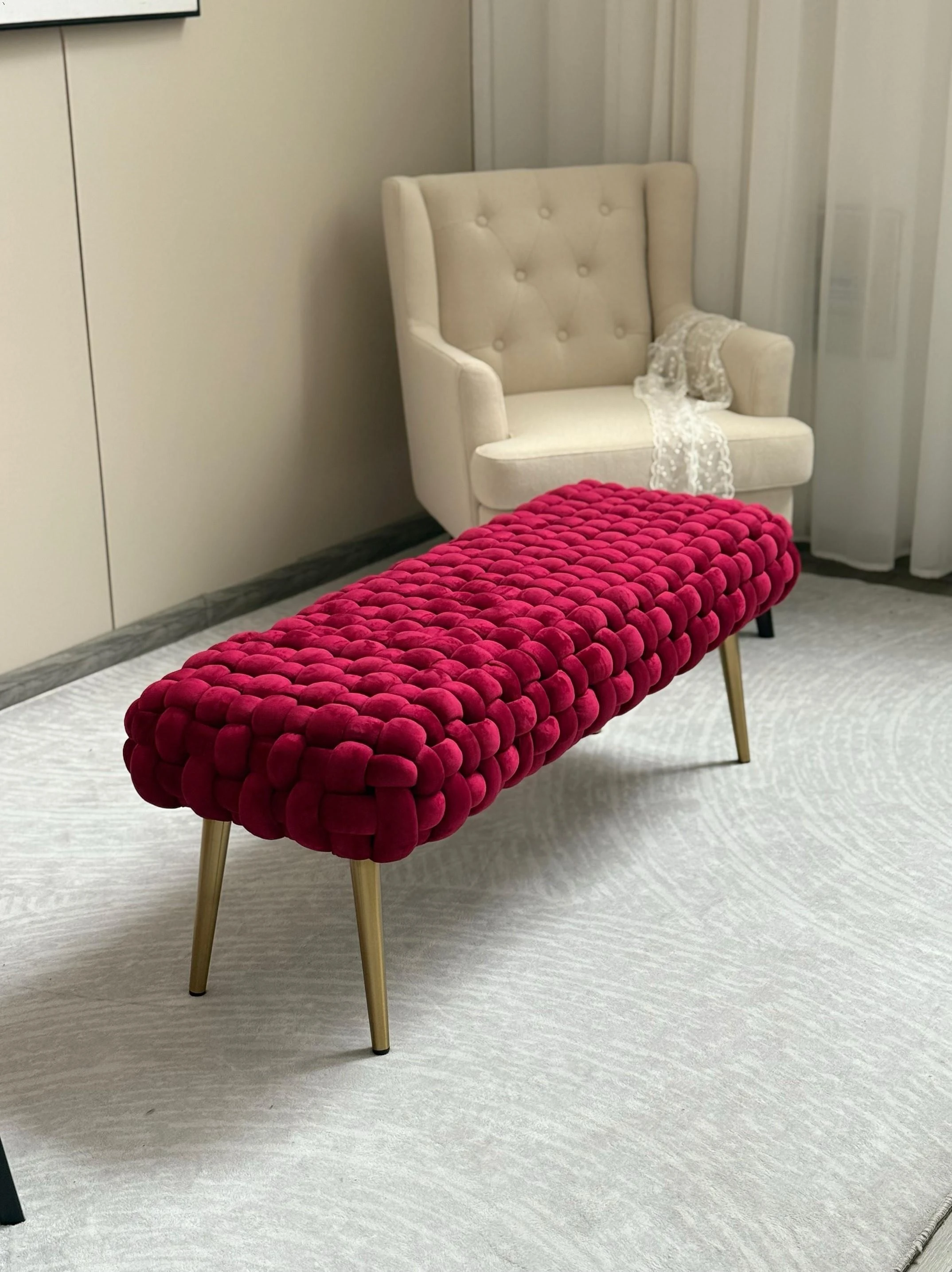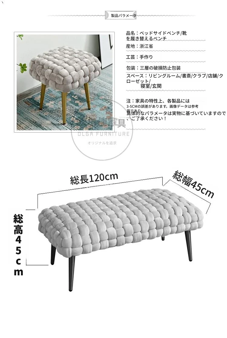 軽やかで洗練されたモダンデザインの衣類収納ソファベンチ - スタイリッシュなドレッシングスツール、シューズベンチとしても最適!おしゃれなインテリアを演出し、快適な入居空間を実現します。