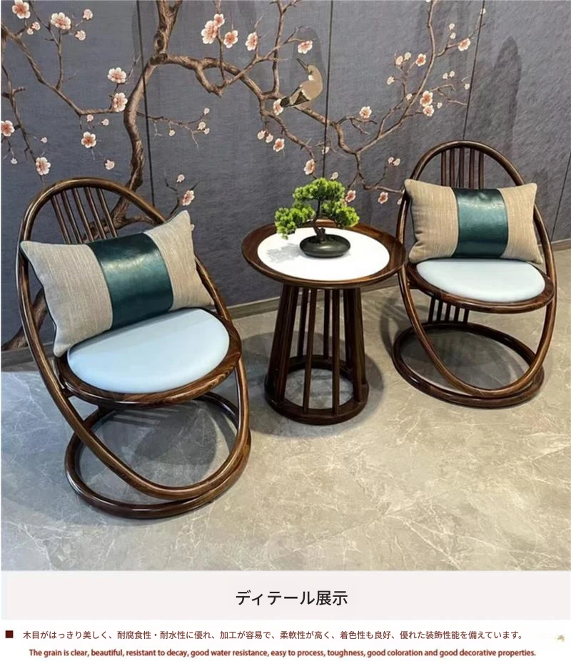 美しい新中式デザインのウー金木製本革レジャーチェア、リビング・バルコニー・寝室に最適な3点セット、優雅なスーリ虎椅子で贅沢なひとときを!