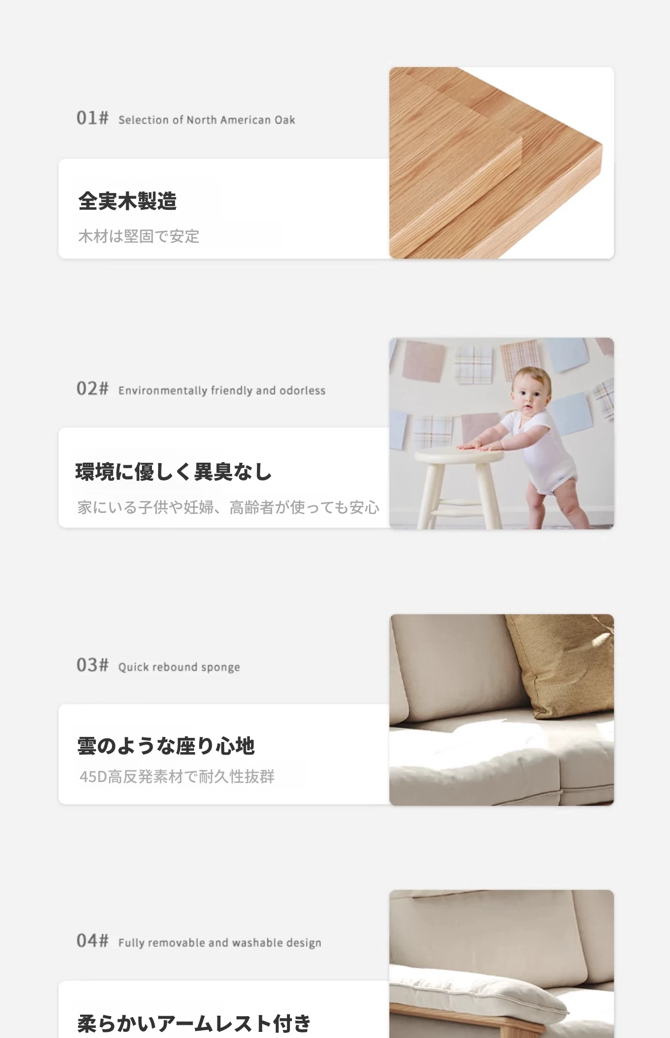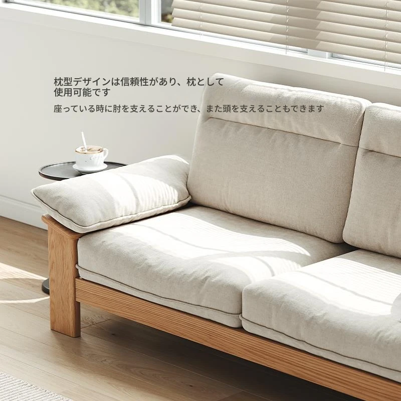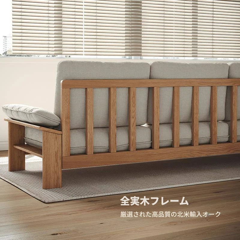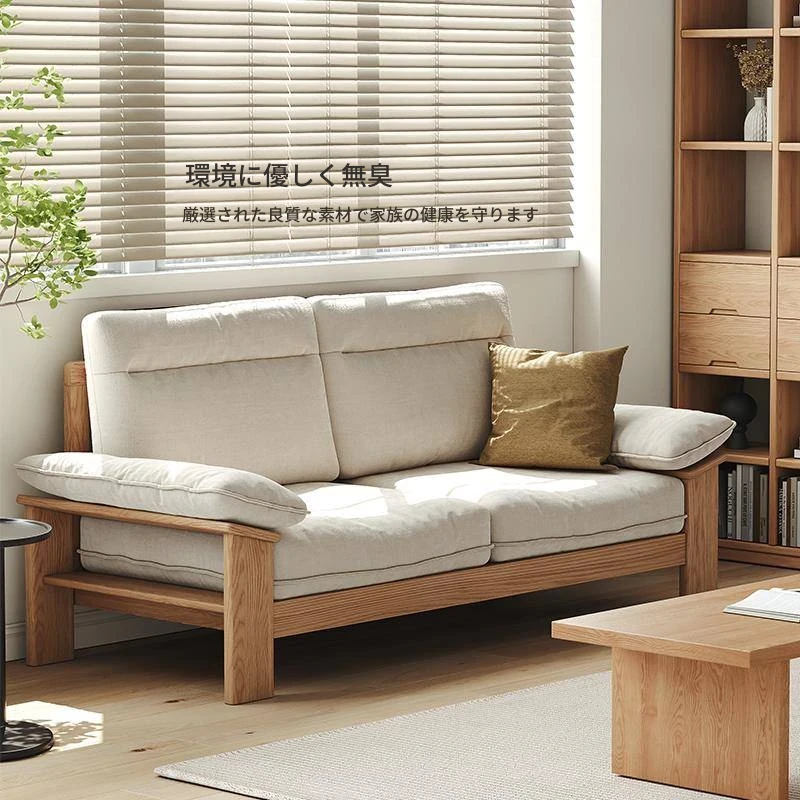 F7NN1オーク無垢材ソファ|モダンデザインのリビング向け|小型住宅に最適|冬夏両用の実用的ソファベッド|天然木の温もりを感じる快適空間を実現!