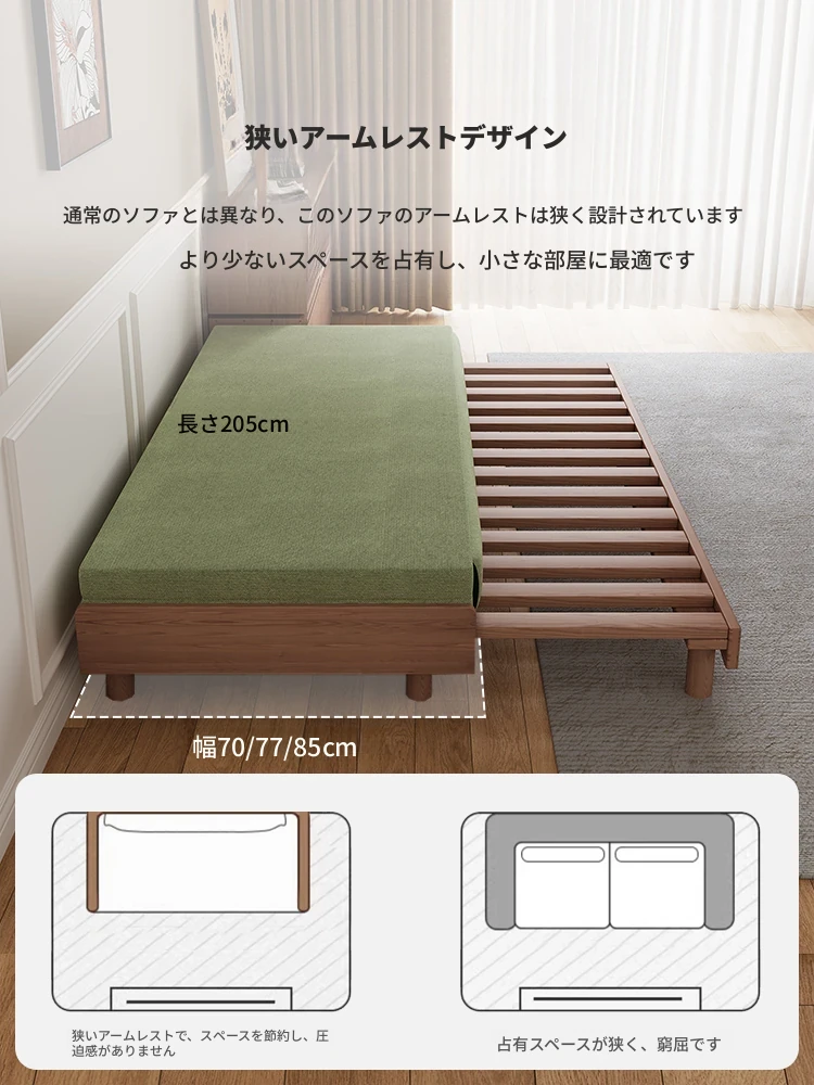 全白蜡木ベッドフレーム 収70 展開1.2m*2.05m(背中を守るココナッツバージョン)アップグレード厚手のフランネル 注文時に色を備考欄に記入