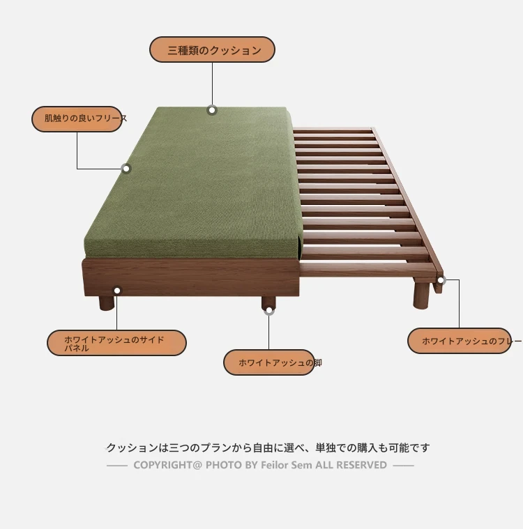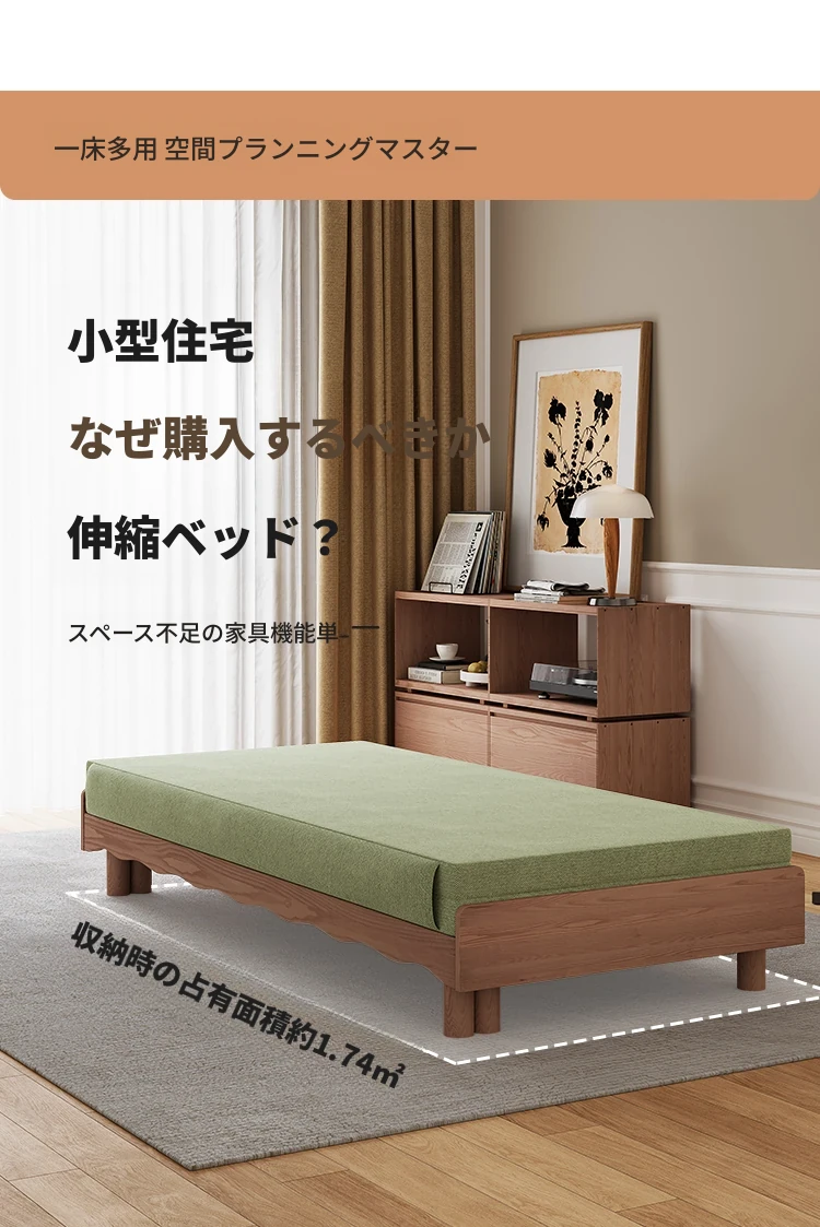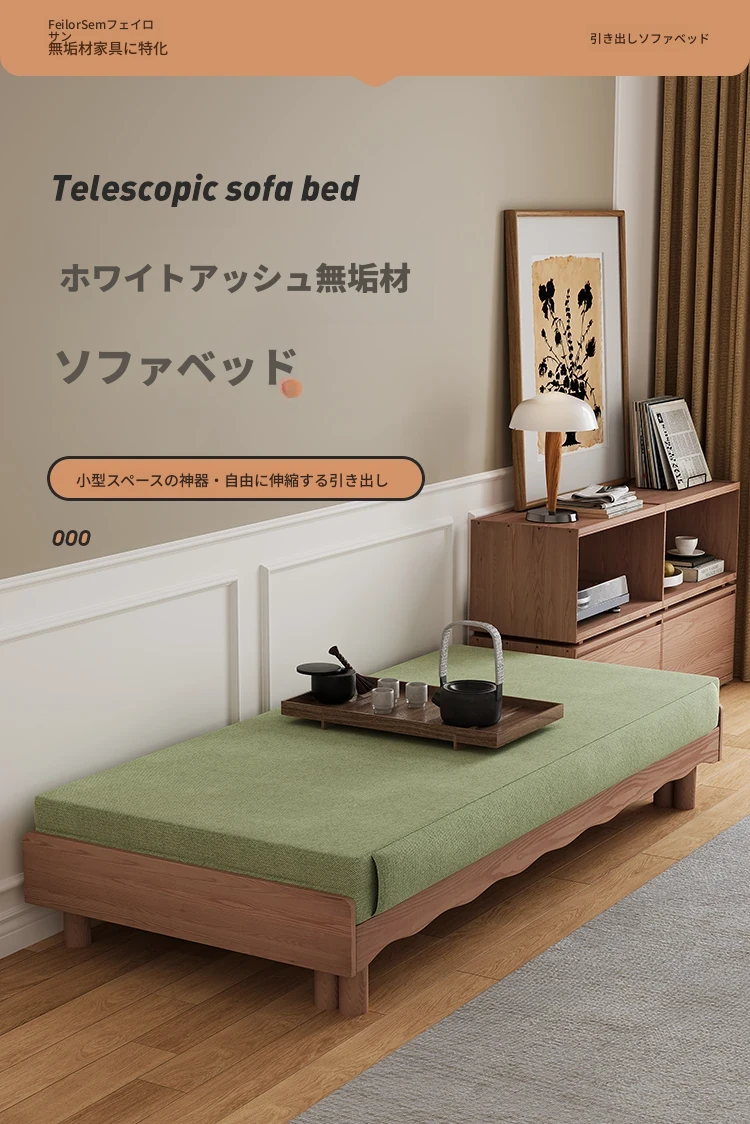 全白蜡木ベッドフレーム 収77 展開1.35m*2.05m(快適ラテックスバージョン)アップグレード厚手のフランネル 注文時に色を備考欄に記入