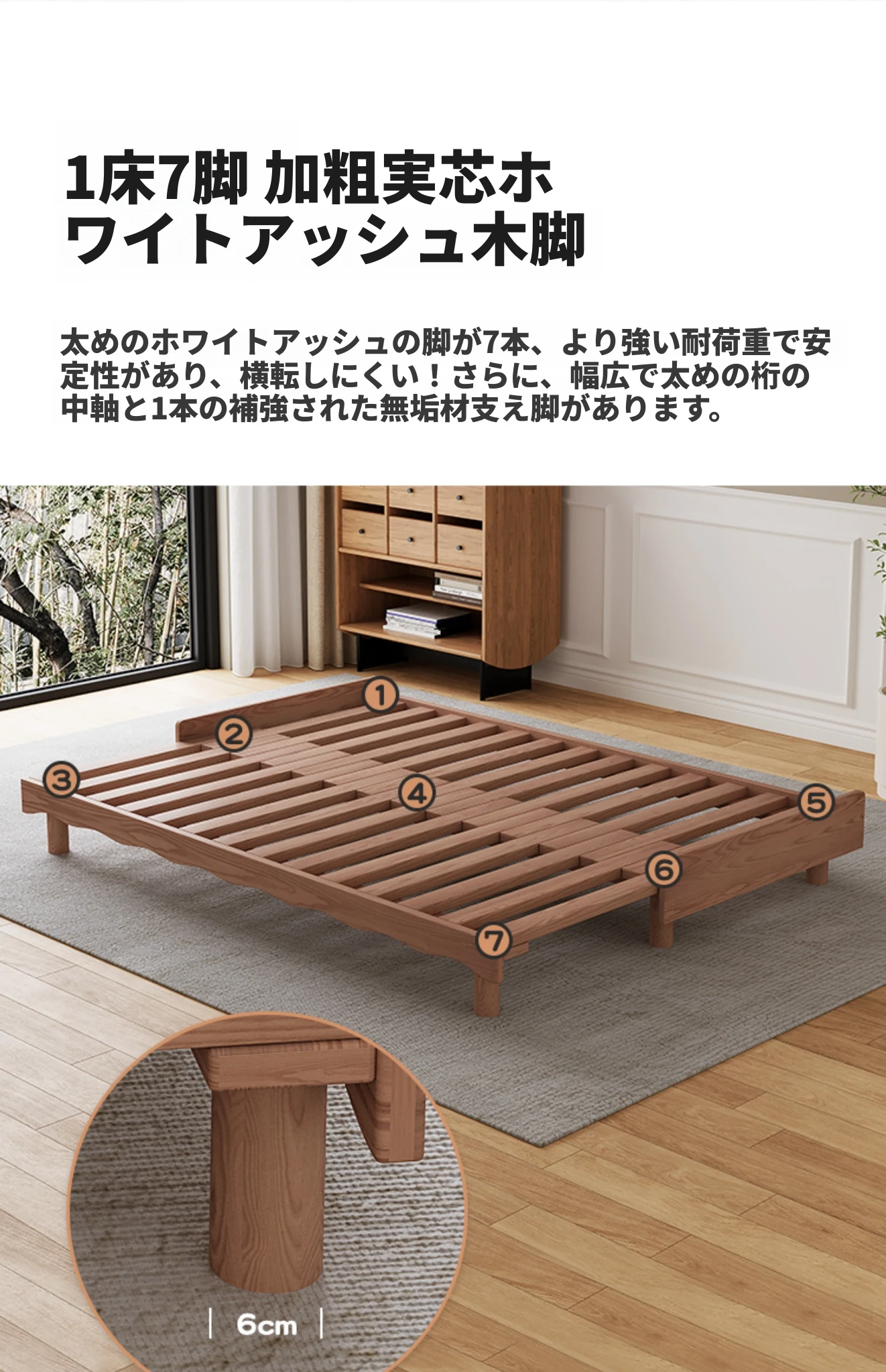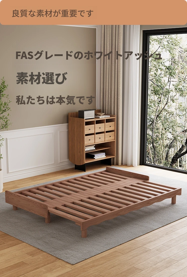 全白蜡木ベッドフレーム 収85 展開1.5m*1.95m【折り畳みマットは含まれません】