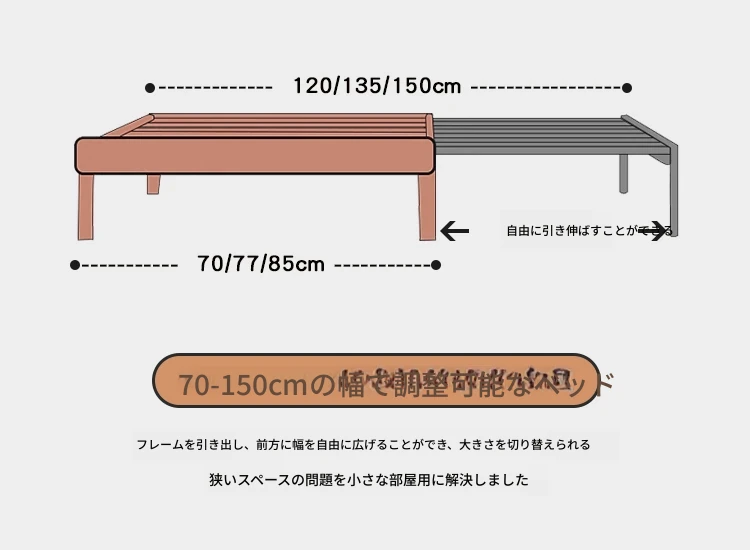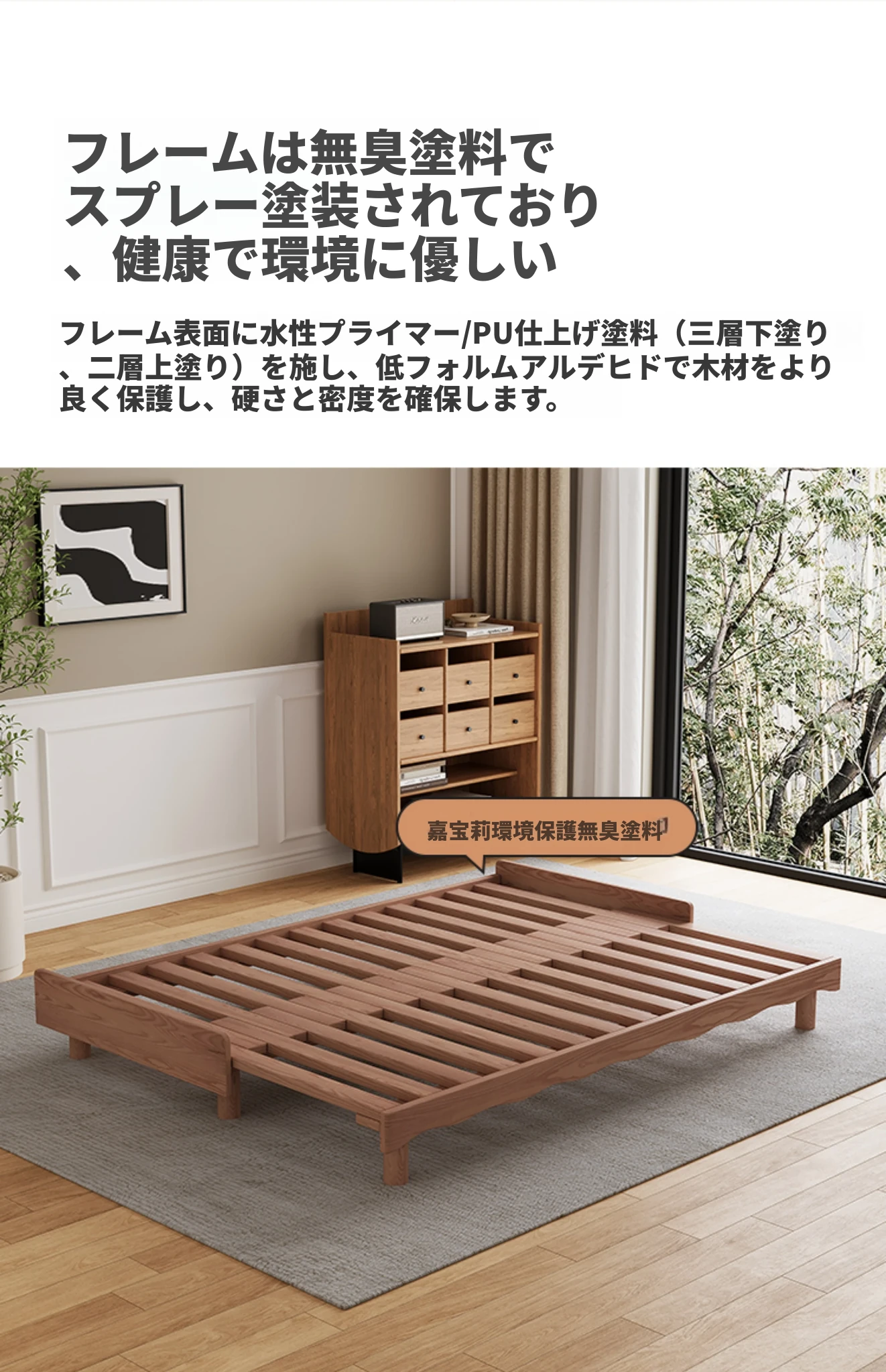 全白蜡木ベッドフレーム 収77 展開1.35m*2.05m【折り畳みマットは含まれません】