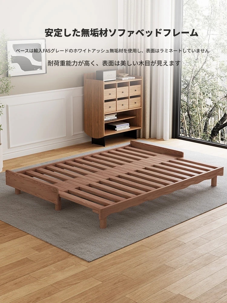 フィロセン北欧スタイルの無垢材ソファベッド|小型リビングに最適なホワイトアッシュ製|多機能引き出し付き伸縮ベッドでスペースを有効活用!