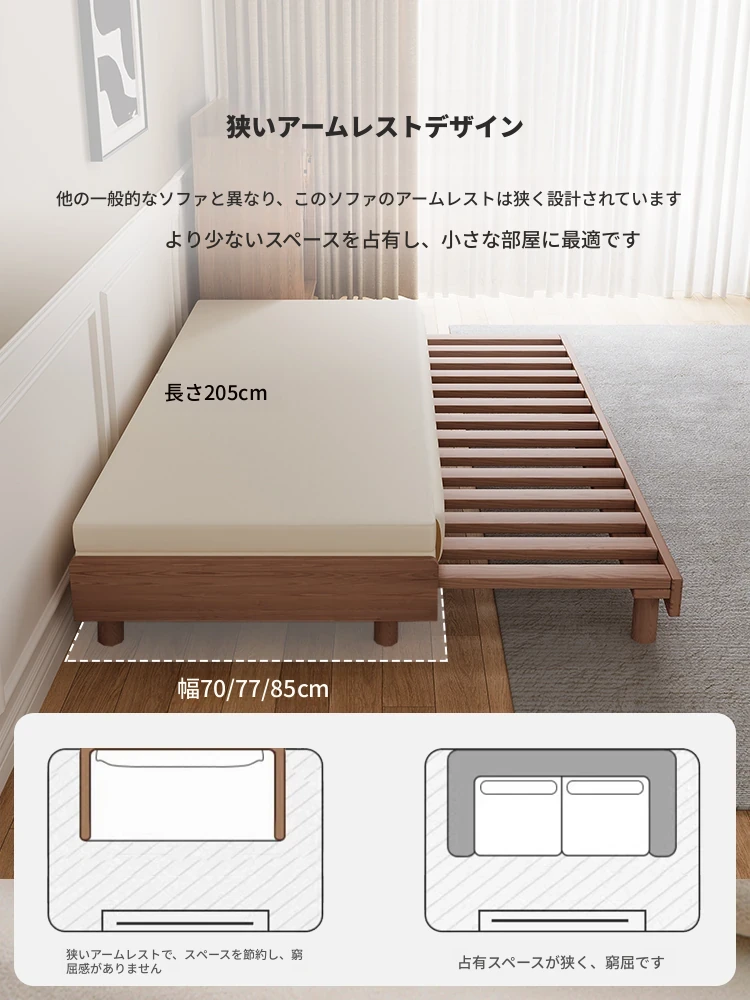 全白蜡木ベッドフレーム 収70 展開1.2メートル*1.95メートル(脊椎保護ココナッツタイプ)アップグレード厚手のフランネル 注文時にカラーを記入