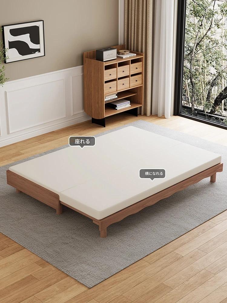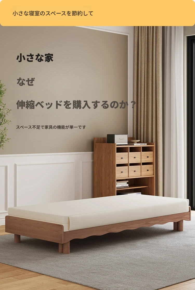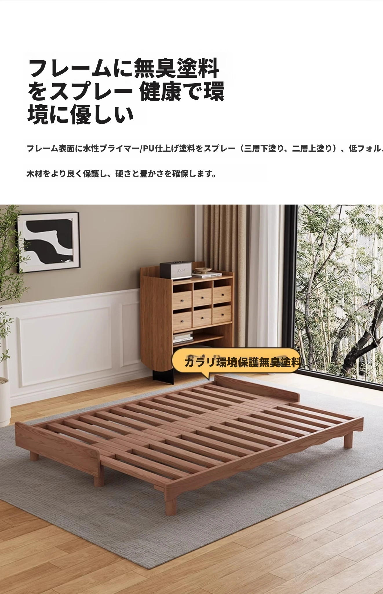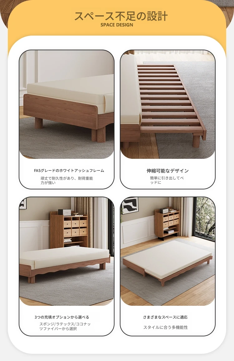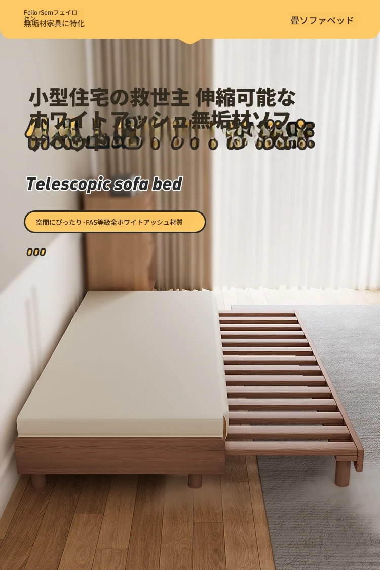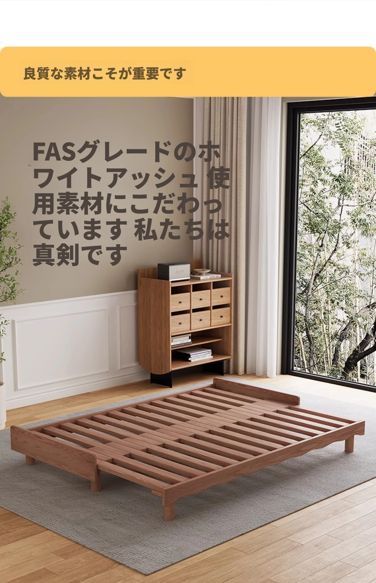 全白蜡木ベッドフレーム 収77 展開1.35メートル*1.95メートル【折りたたみマットレスは含まれていません】