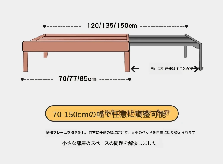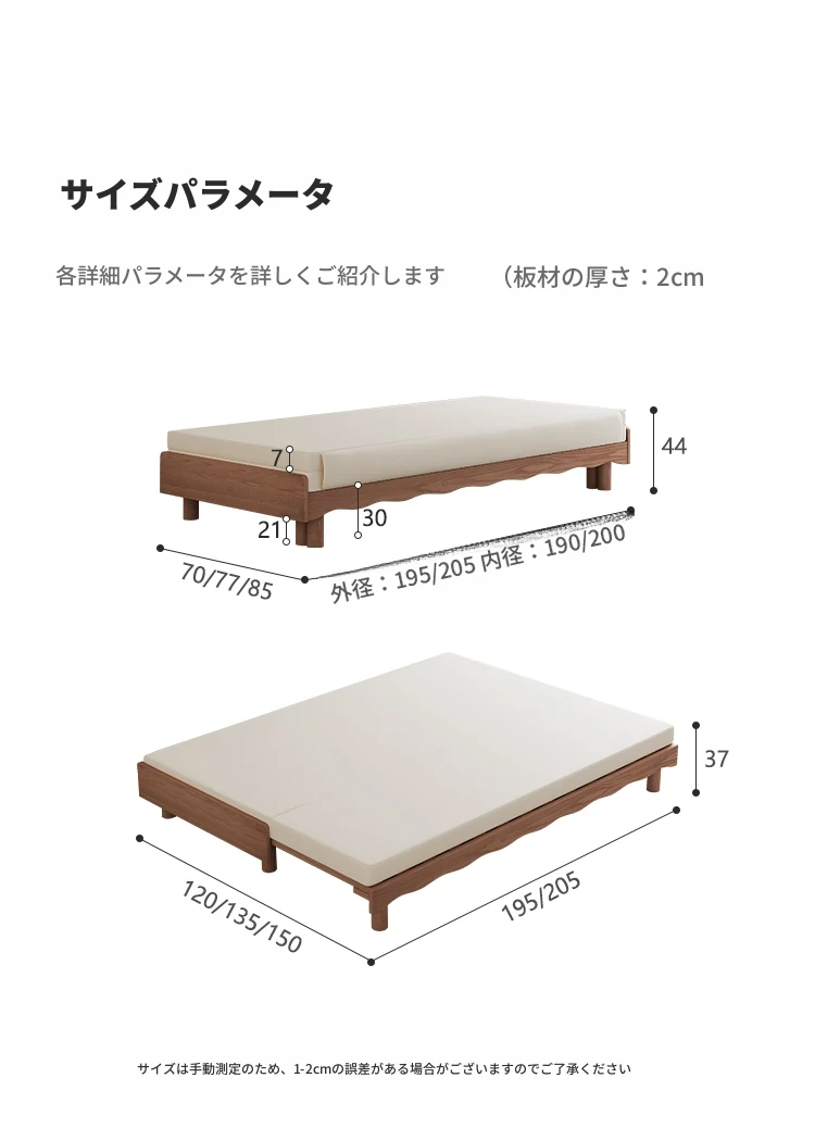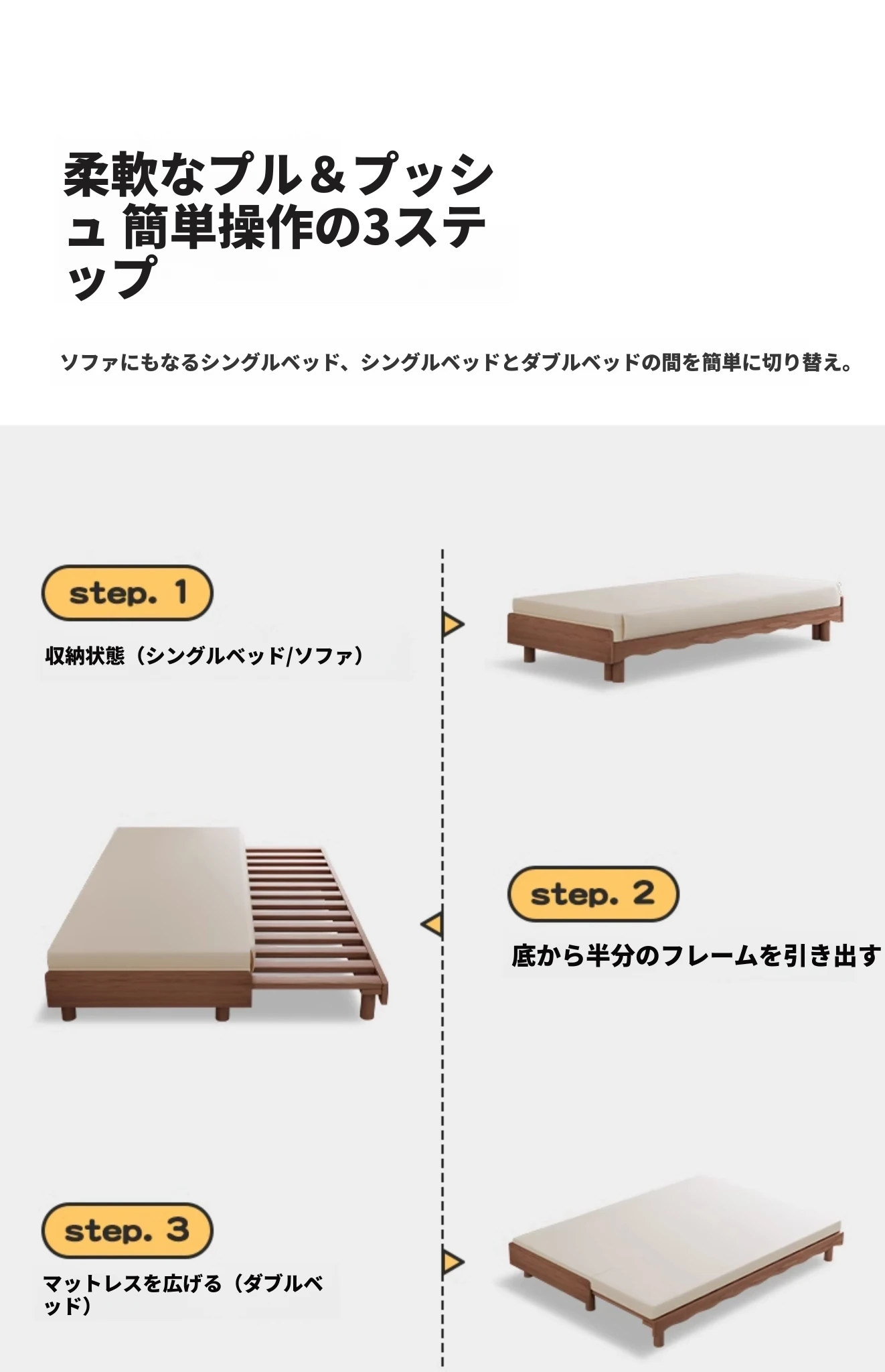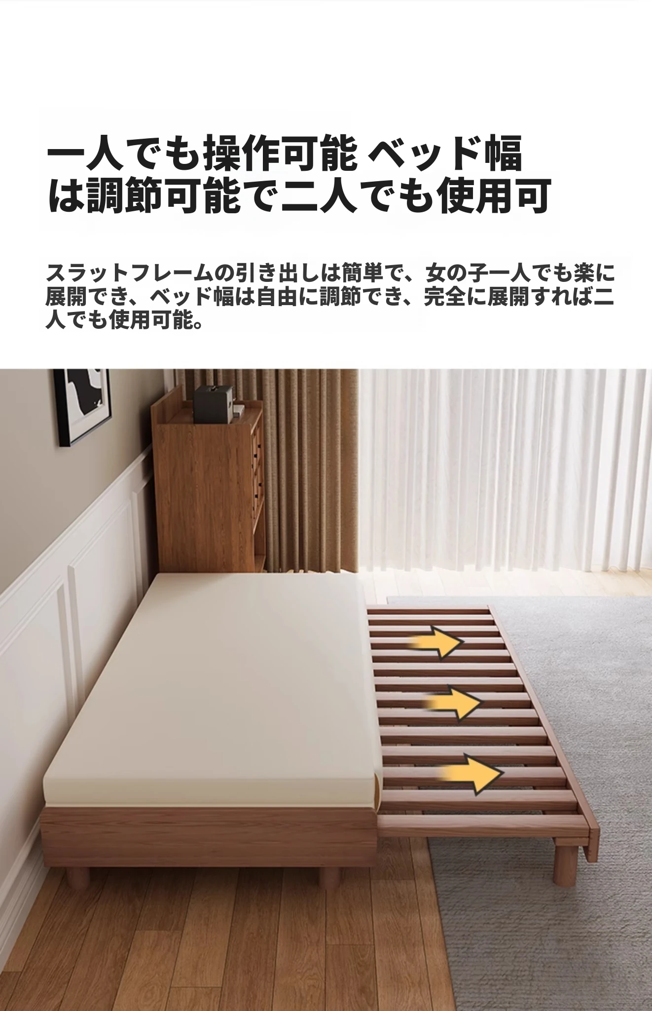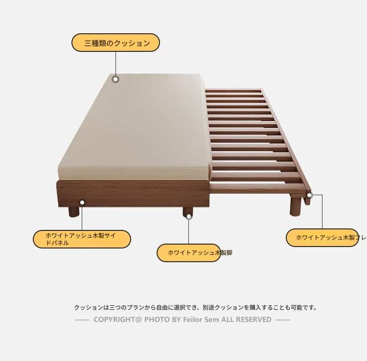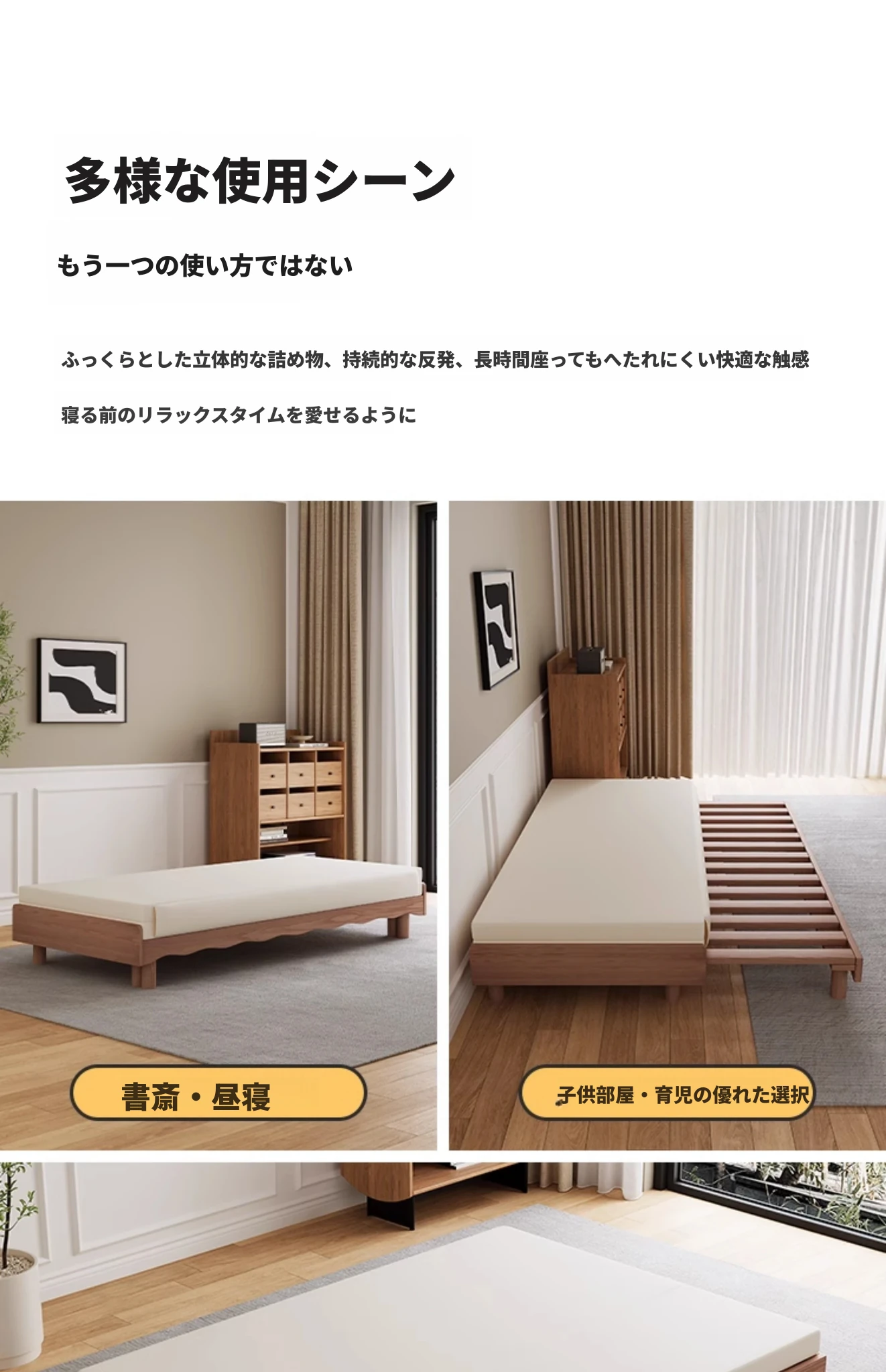 全白蜡木ベッドフレーム 収77 展開1.35メートル*1.95メートル【折りたたみマットレスは含まれていません】