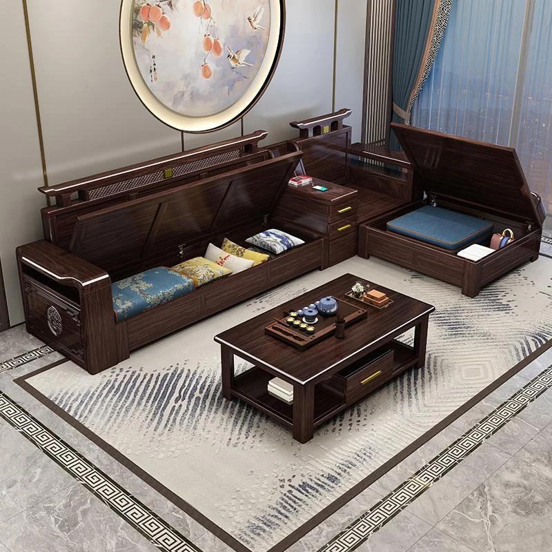 【香港送料無料】新登場!紫金檀木製全実木ソファー - 中華スタイルの小型客室向け、収納機能付き貴妃ソファーでおしゃれな空間を演出!