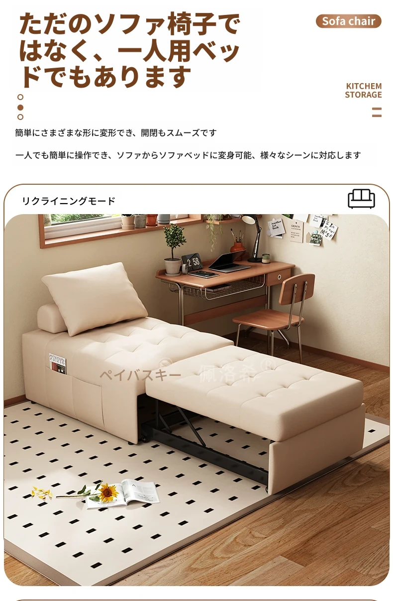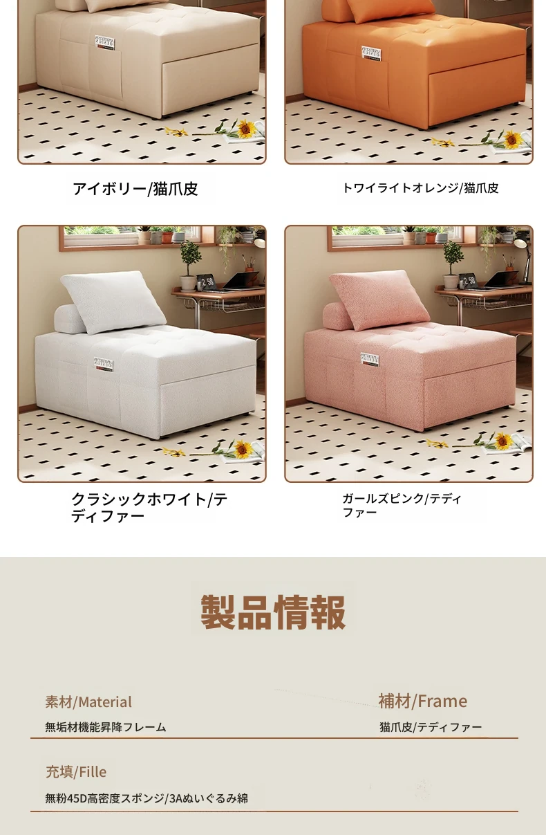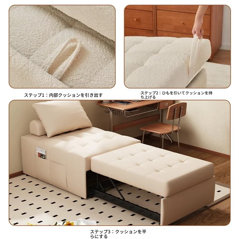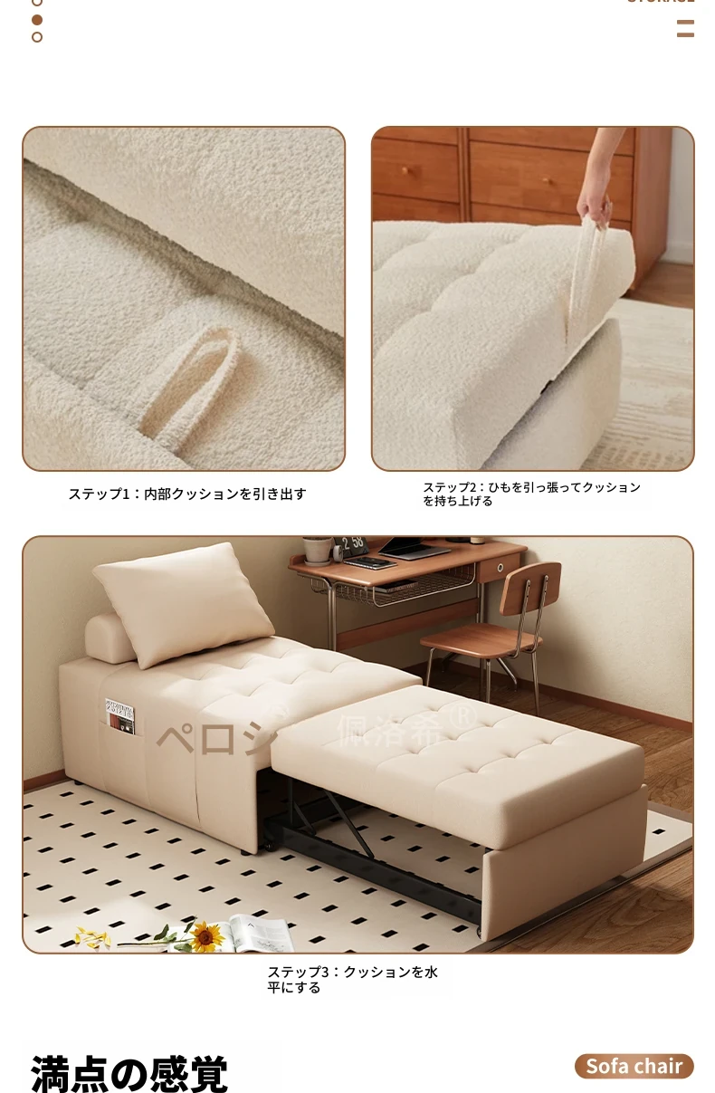 [香港送料無料] 2024年新作!ふわふわシフォンソファベッド - 折りたたみ式・2WAYデザイン、小型リビングに最適なスリムなシングルソファベッド!快適な眠りとスタイリッシュな空間を実現します!