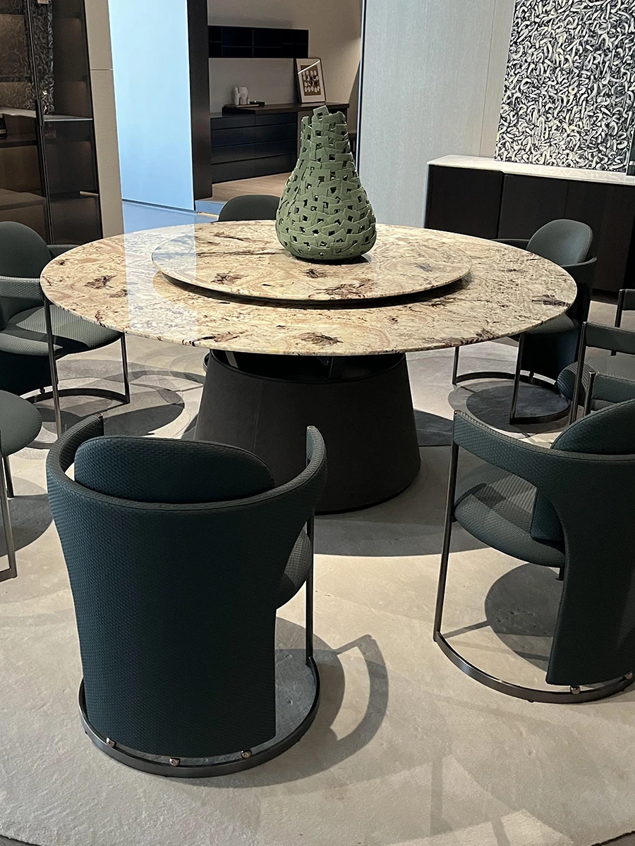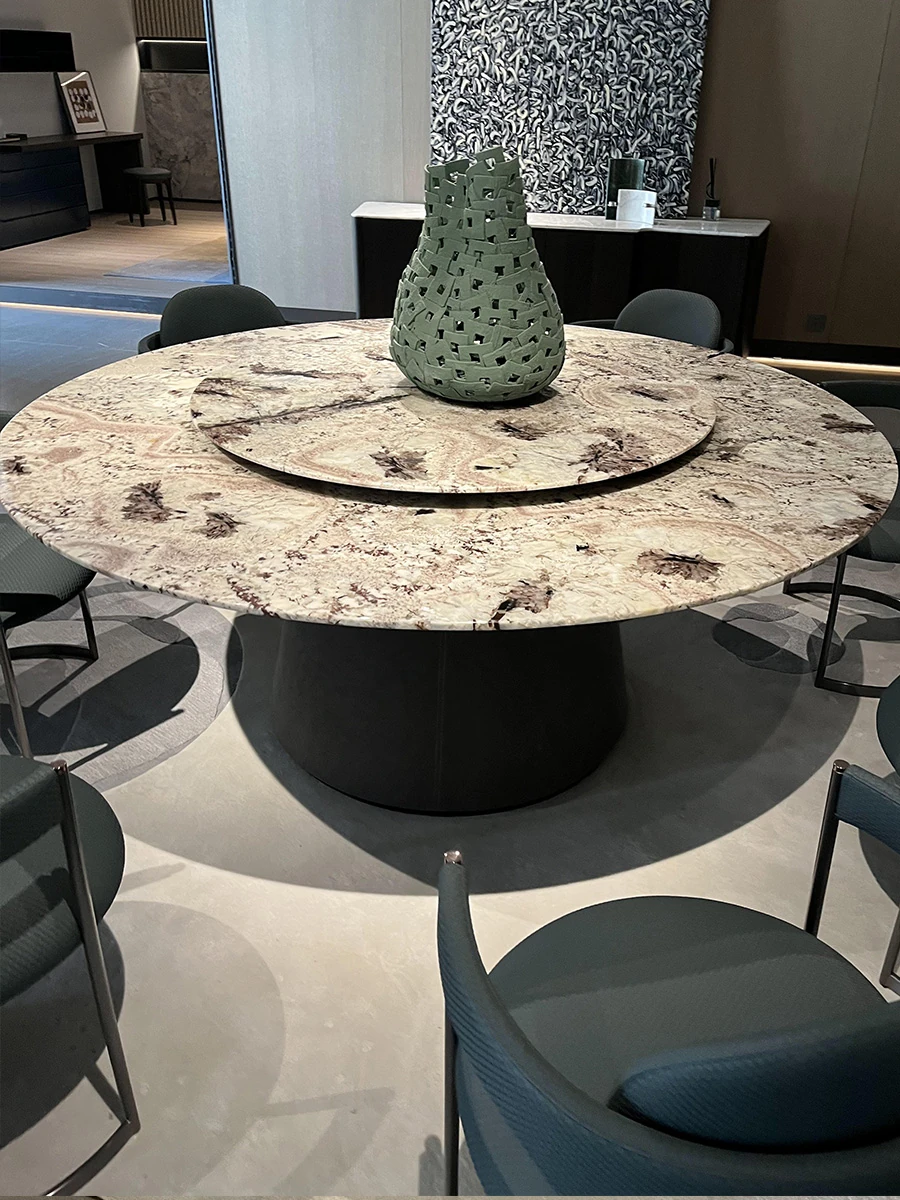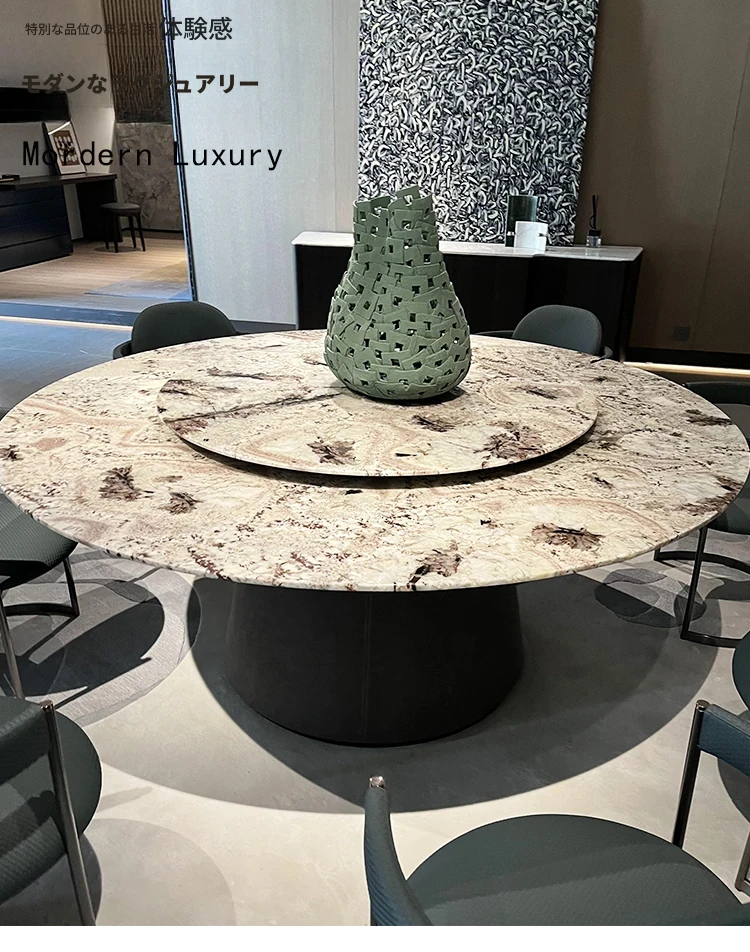 イタリアンラグジュアリー超クリスタルストーンヴィラ用ラグジュアリー大理石円形テーブル モダンミニマリストデザイン 高級ダイニングテーブルセット 家庭用に最適!