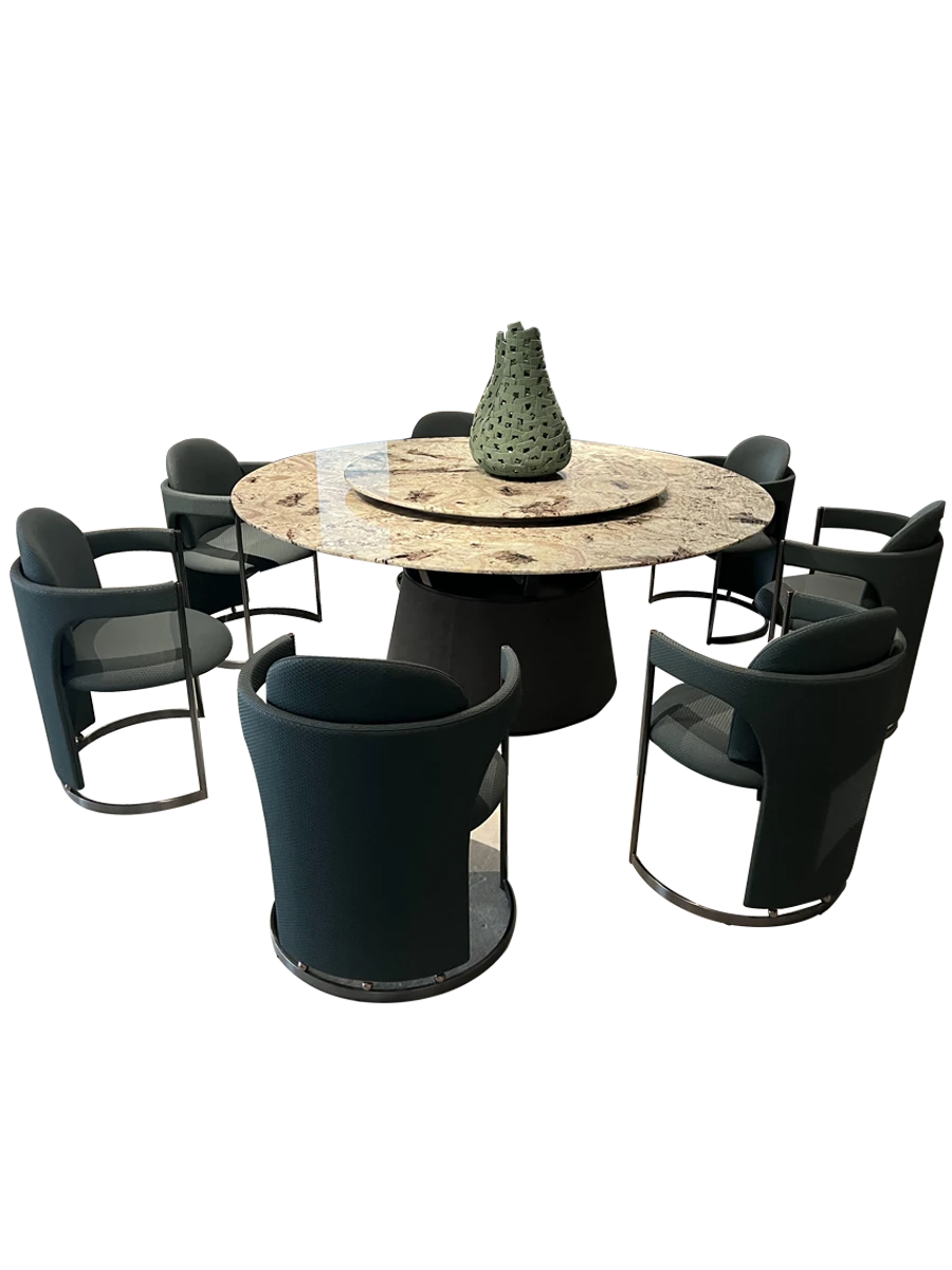 イタリアンラグジュアリー大理石ダイニングテーブル&チェアセット|現代的で高級感あふれる楕円形テーブル|別荘や小型住宅にもぴったりな家具!