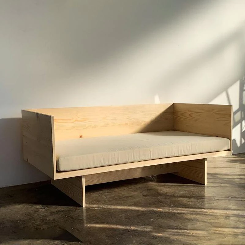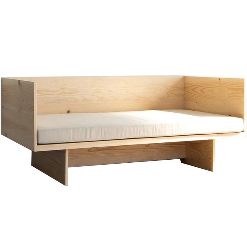 シンプルでモダンな和風無垢材ソファ|リラックスできる布製|小型住宅や民宿にぴったりの家具|おしゃれな客間やホテルにも最適!