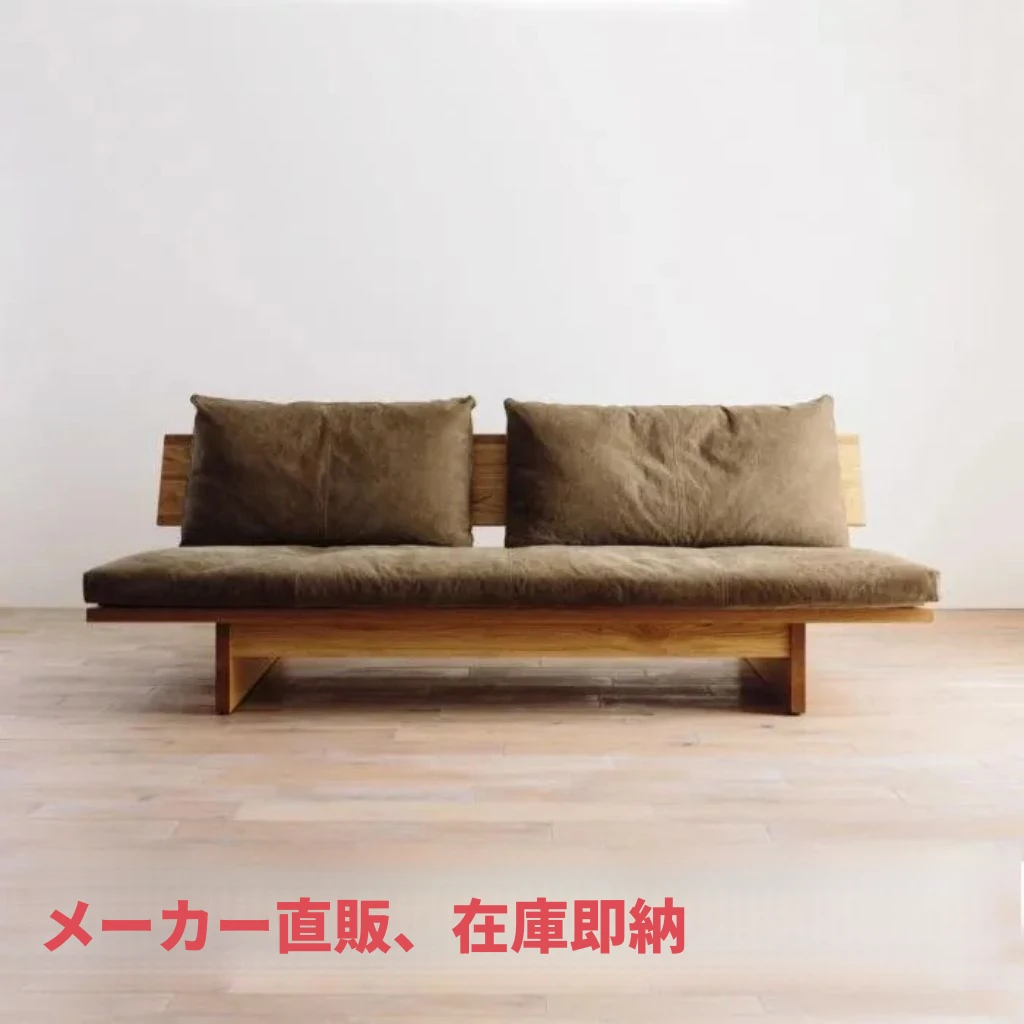 和モダンな侘寂スタイルの小型リビング用2人掛けソファセット - 自然木素材のシンプルな布製家具で、民宿やおしゃれな空間にぴったり!