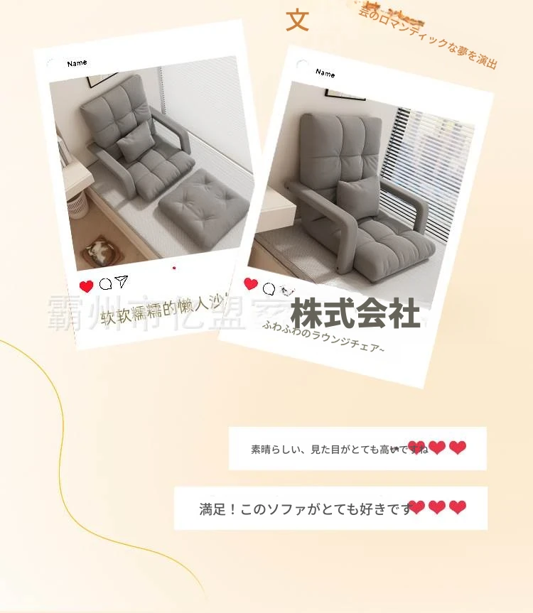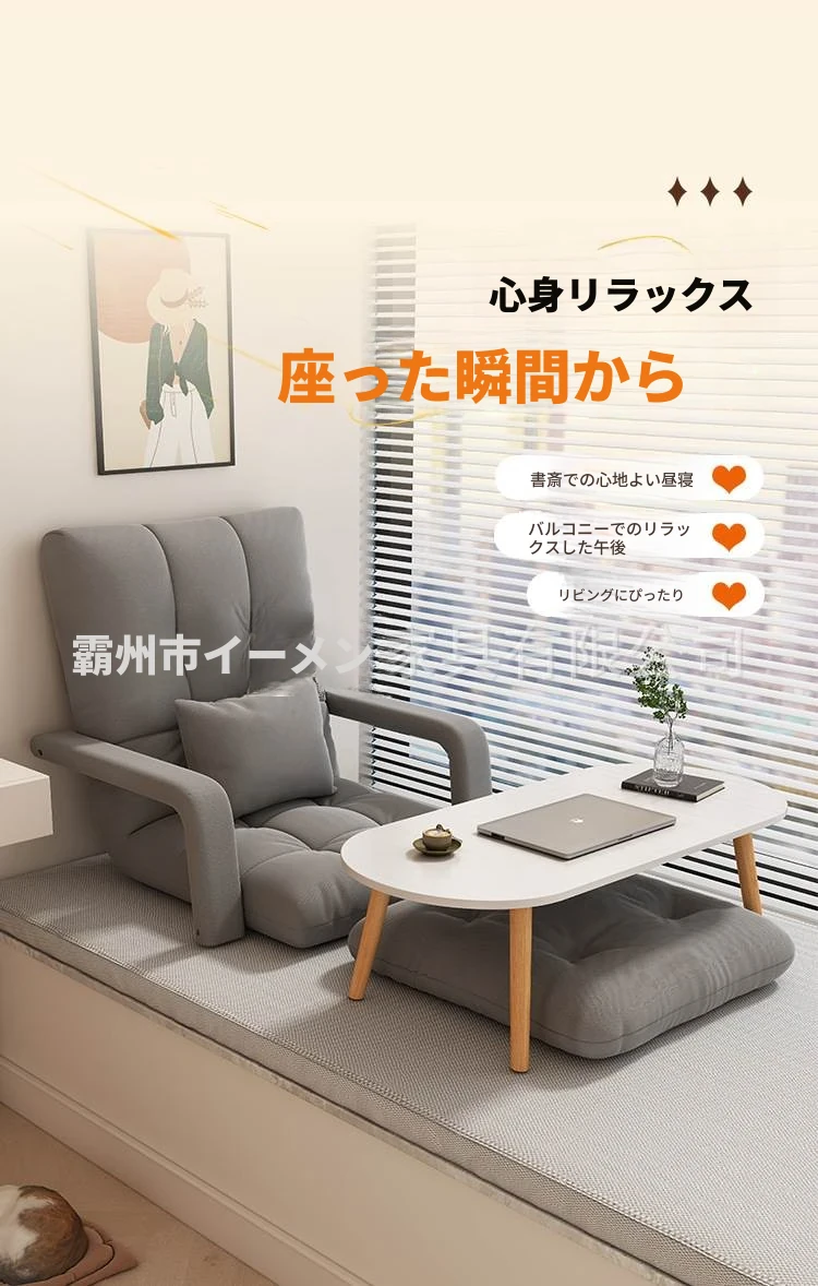 リラックスソファ|寝室や窓辺にぴったり!フルフラットでくつろげる単身用ソファ、バルコニーや畳の上でも使える快適なリラックスチェア。心地よい時間をあなたに。