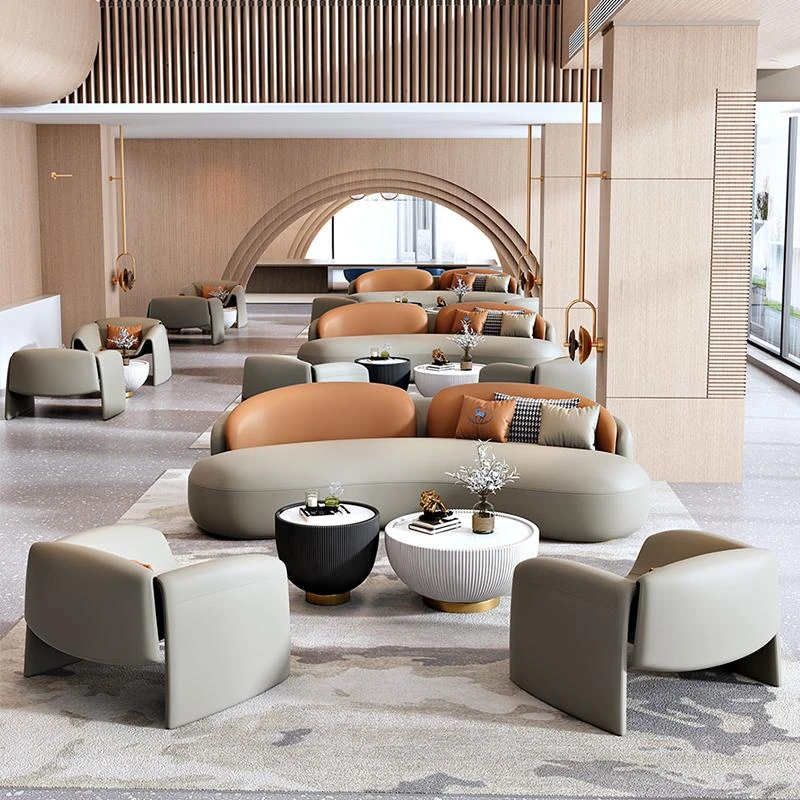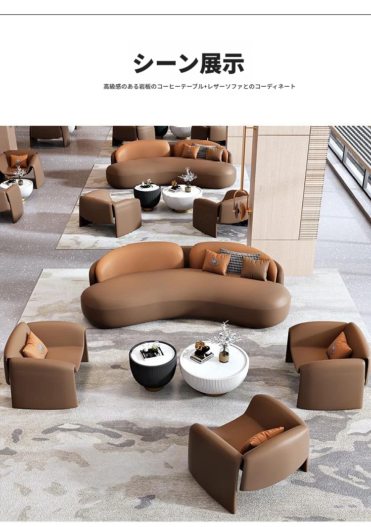 オフィス休憩エリアにぴったり!ラグジュアリーなリラックスソファとティーテーブルのセット。美容院や販売所にも最適な会議・接客用家具のコンビネーションで、上質な空間を演出します。
