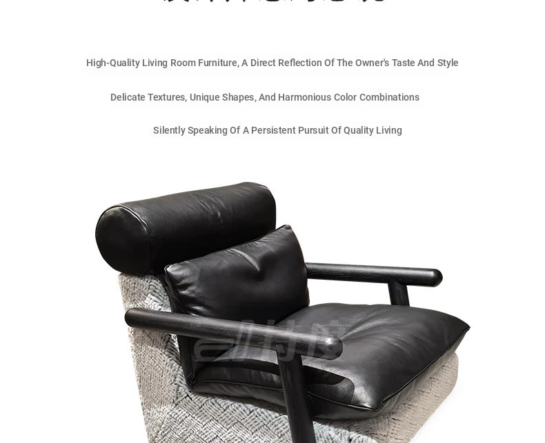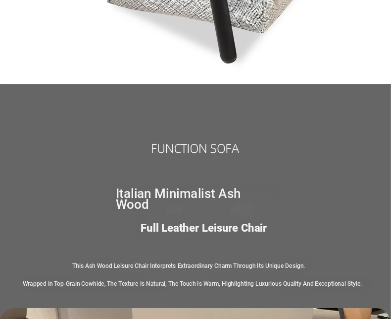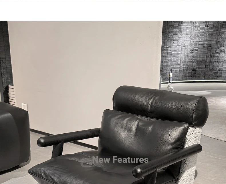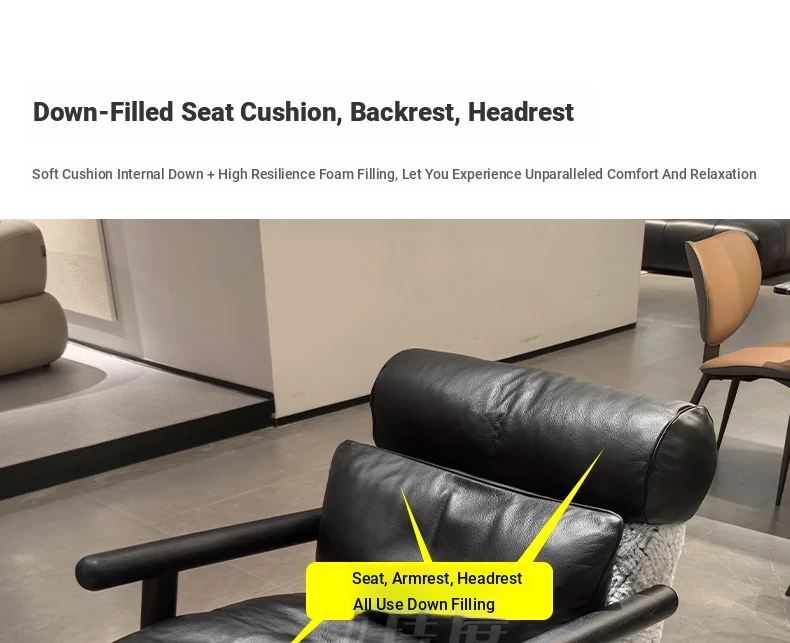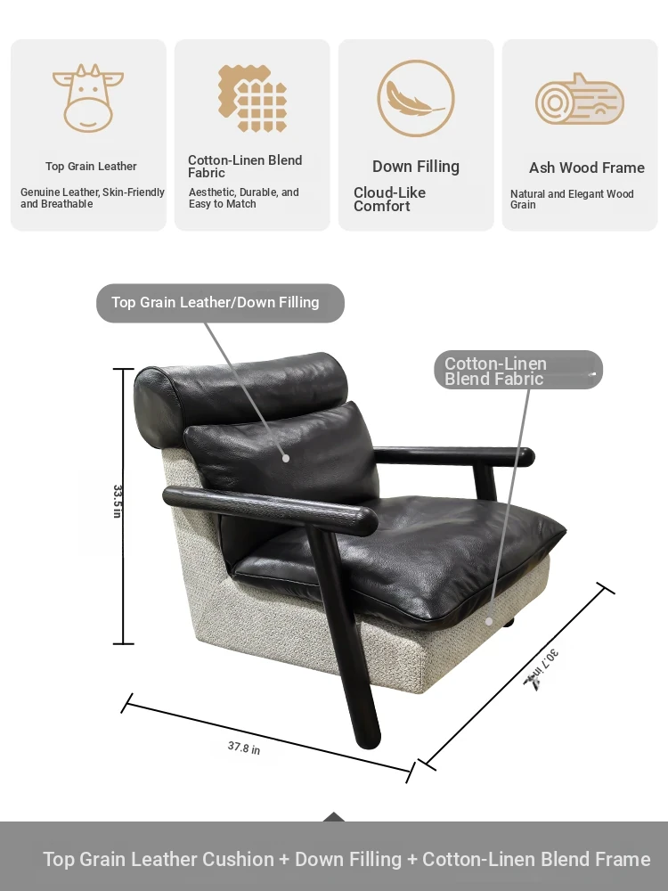 Luxury Italian Minimalist Real Leather Single Sofa Chair - Stylish and Comfortable Lounge Chair with Down Filling for Ultimate Relaxation in Your Living Room