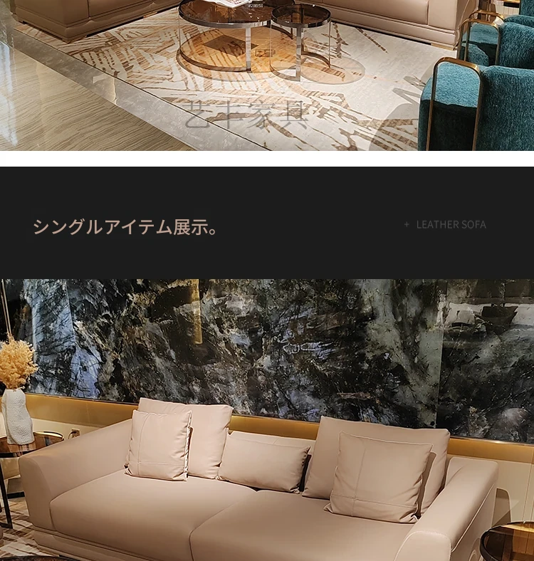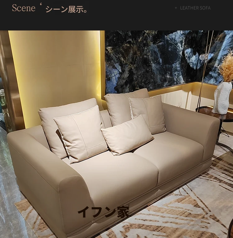 ラグジュアリーなイタリアンレザーソファセット - モダンでスタイリッシュなリビングルームに最適!別荘や広々としたマンションにもぴったりな、上質なデザイン家具。あなたの空間を格上げする一品です。