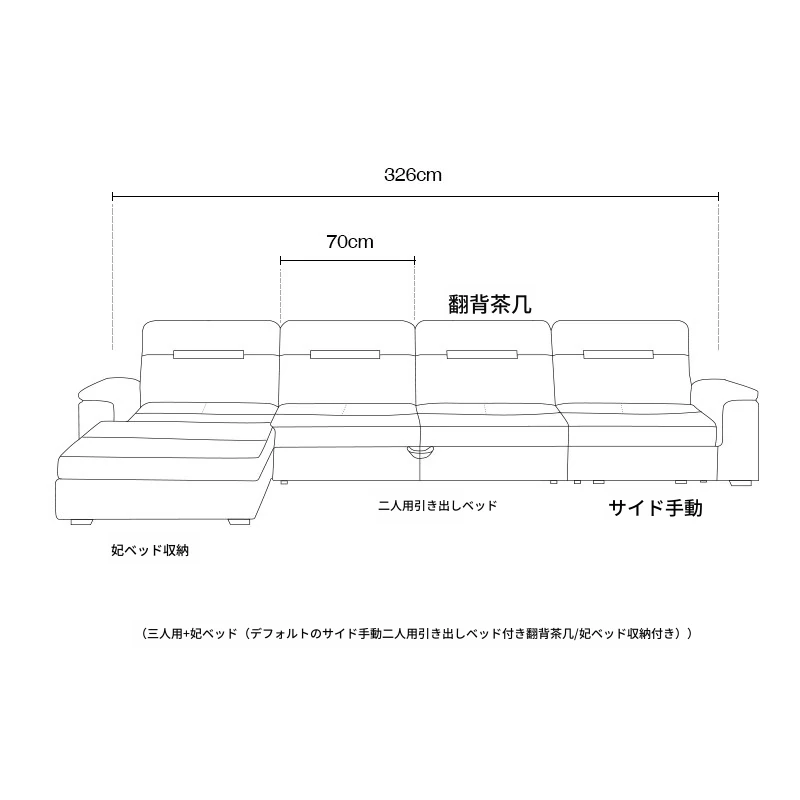 コーナー3.26メートル:側面手動+ラ床 妃ベッド収納付き