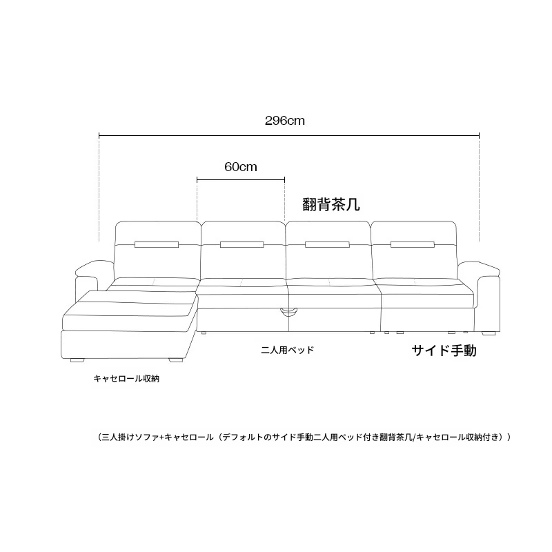 コーナー2.96メートル:側面手動+ラ床 妃ベッド収納付き