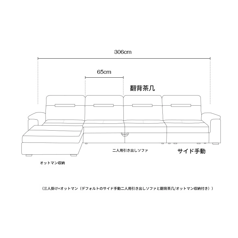 コーナー3.06メートル:側面手動+ラ床 妃ベッド収納付き