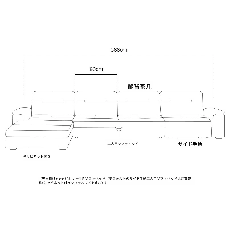 コーナー3.66メートル:側面手動+ラ床 妃ベッド収納付き