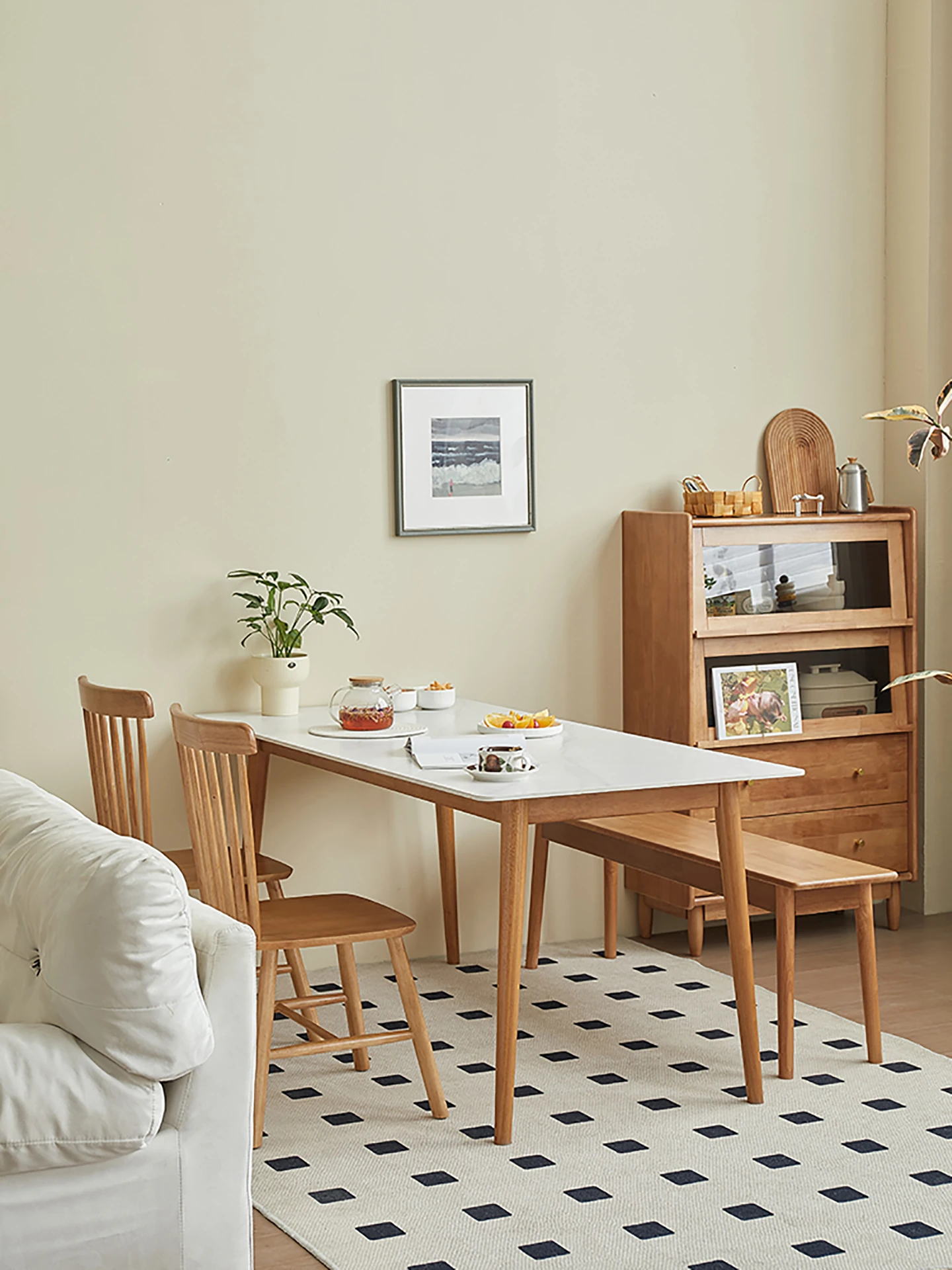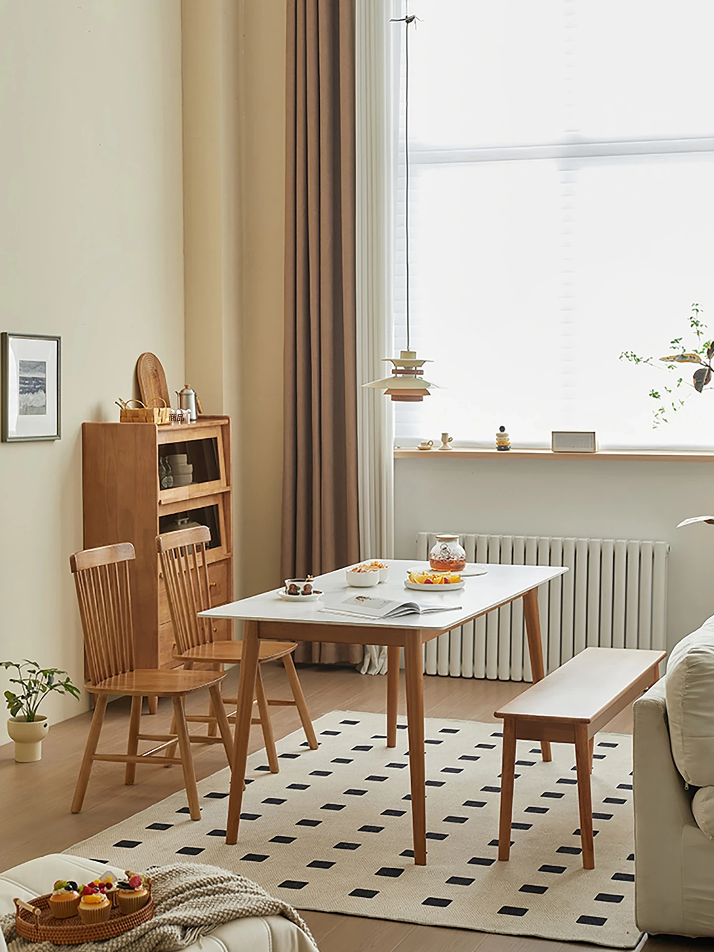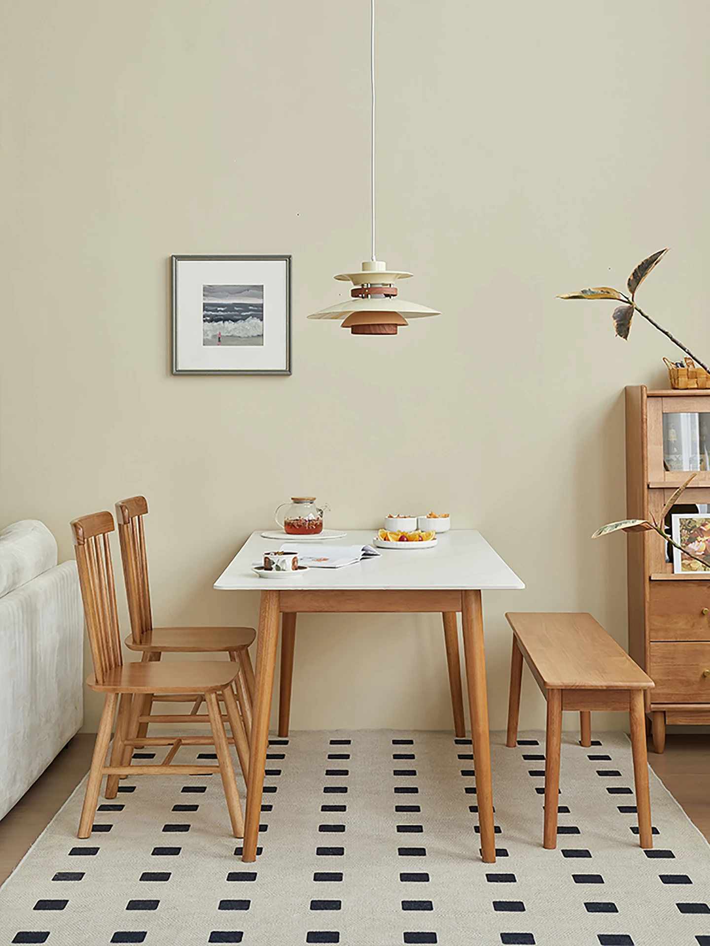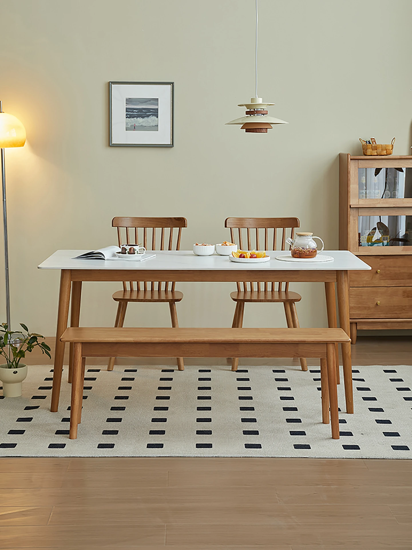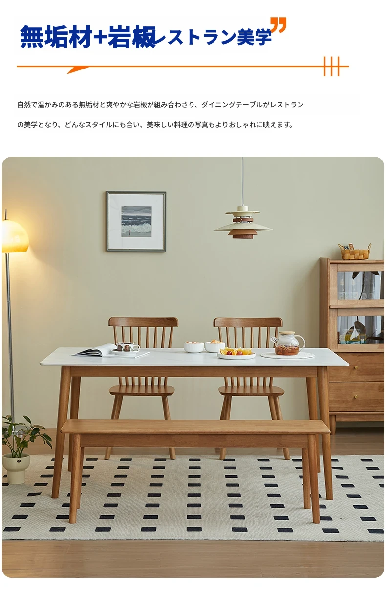 実木製ロックボードダイニングテーブルセット|小型家庭向け|モダンシンプルな長方形デザイン|チェリーレッド|食事や書斎に最適!快適な食事時間を演出します!
